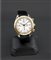 Cassa in tre corpi con anse a elica; lunetta in oro giallo incisa; quadrante con indici applicati, contatore 30 minuti al 12, secondi continui al 12, ore al 6
