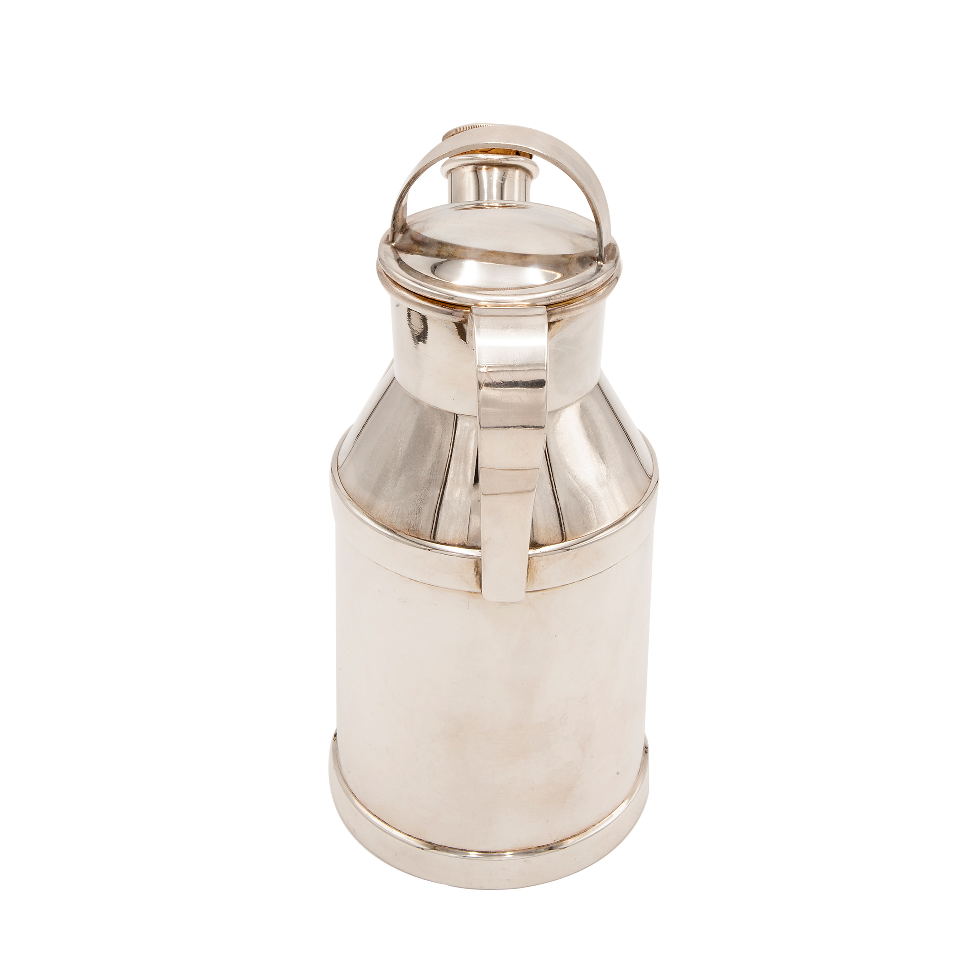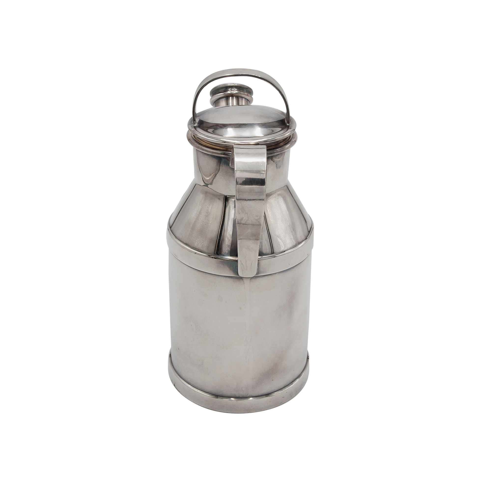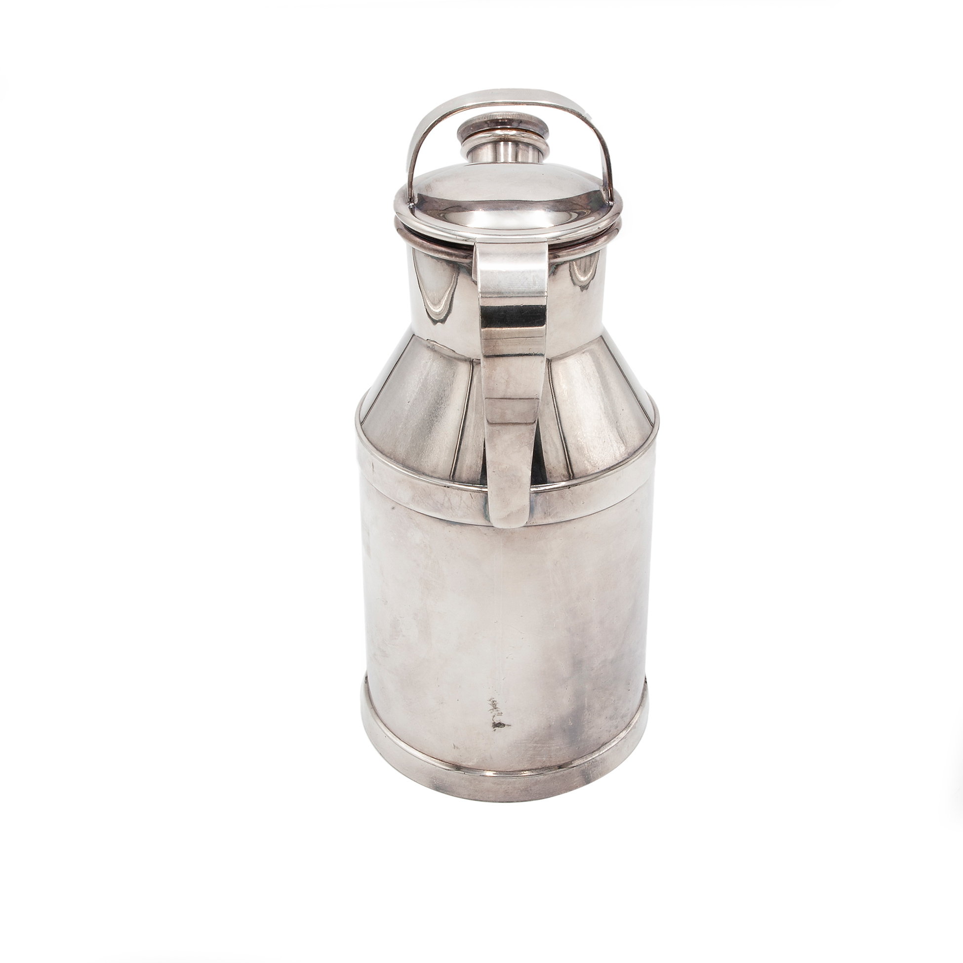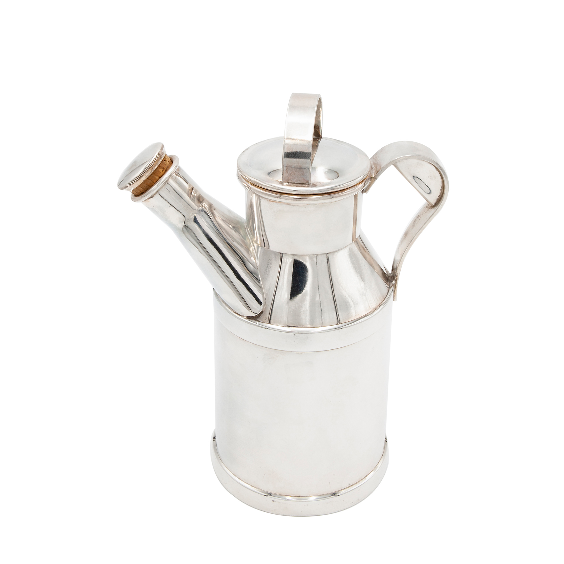 Gruppo di tre shaker in forma di bricco del latte, Reed & Barton 1934 circa Set realizzato interamente in metallo cromato, presente marchio 'Reed & Barton - 25/64 oz.' Dimensioni 28x21x12 cm. ca cad.