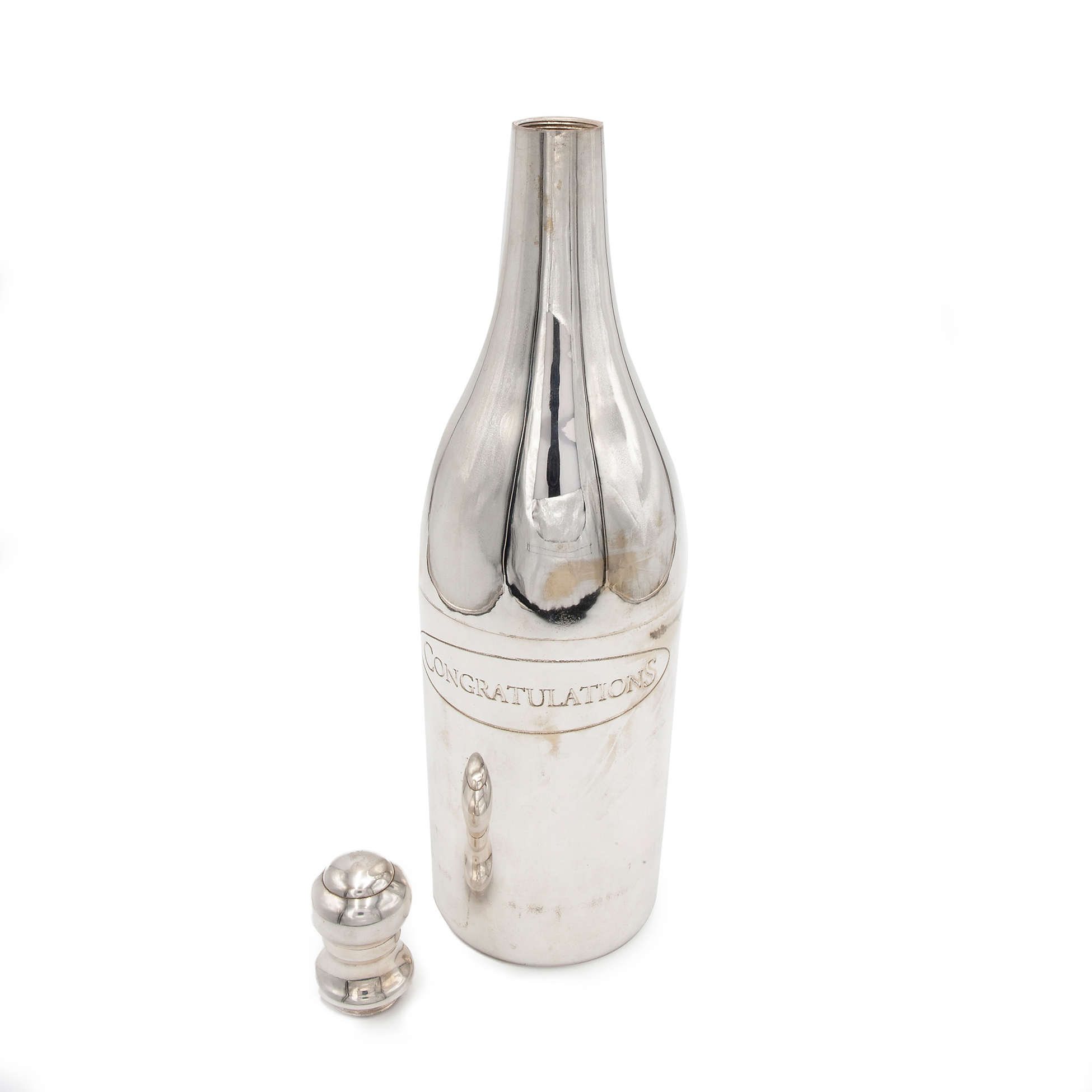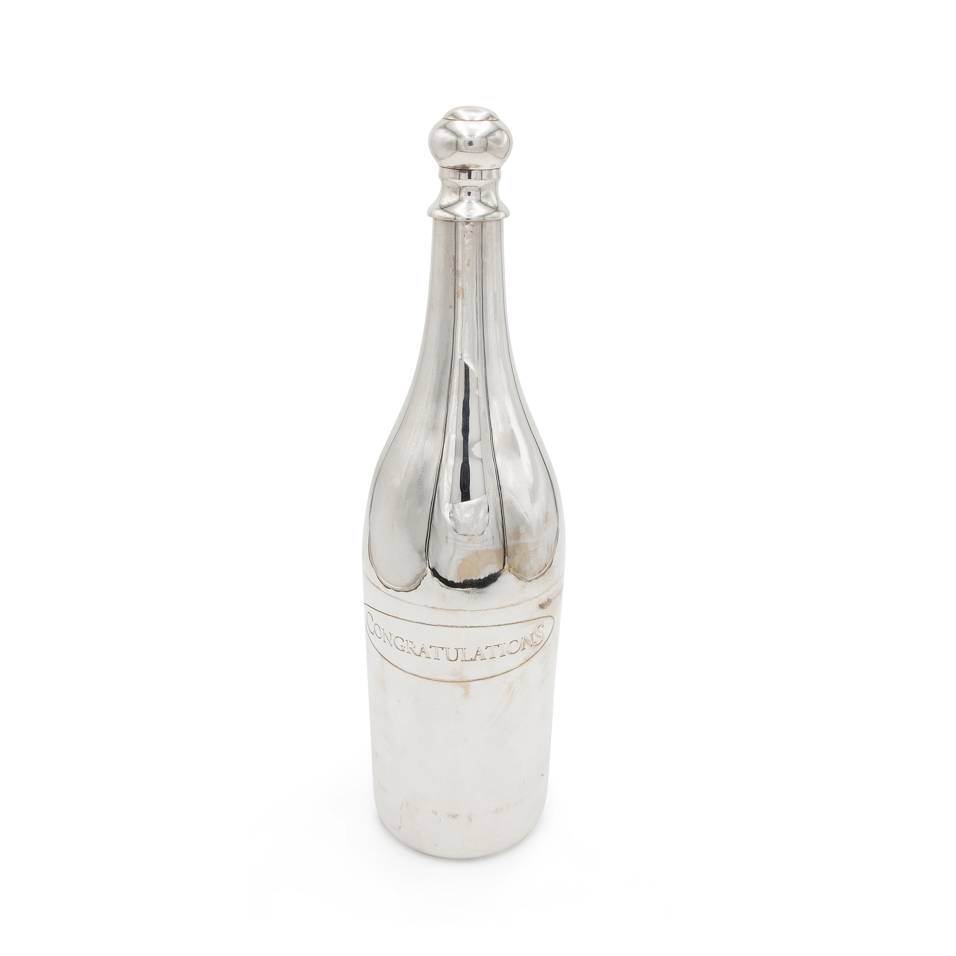 Grande shaker Deco in forma di bottiglia Presente l'iscrizione 'Congratulations' sul fronte, realizzata in metallo cromato Dimensioni 40x9,5 cm.