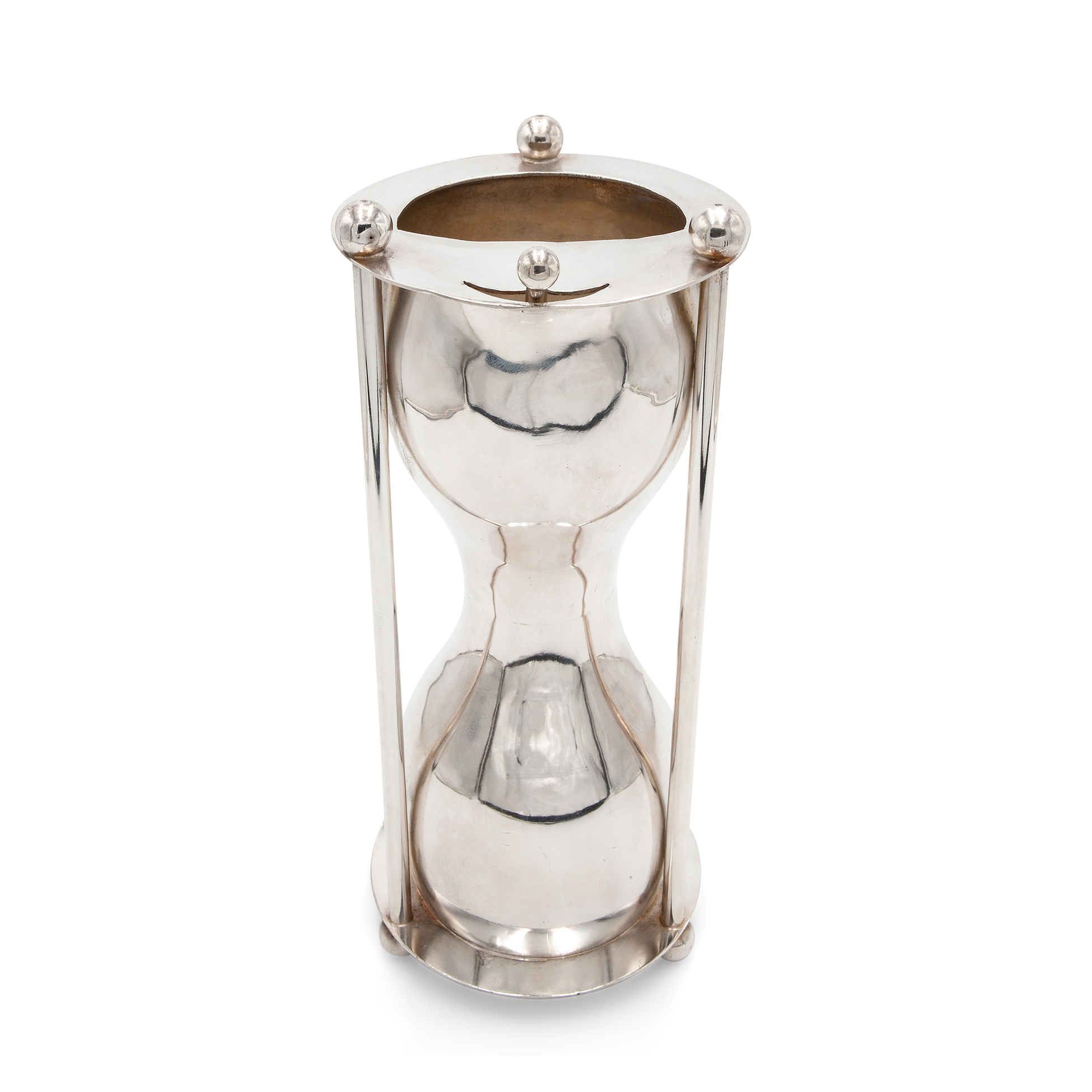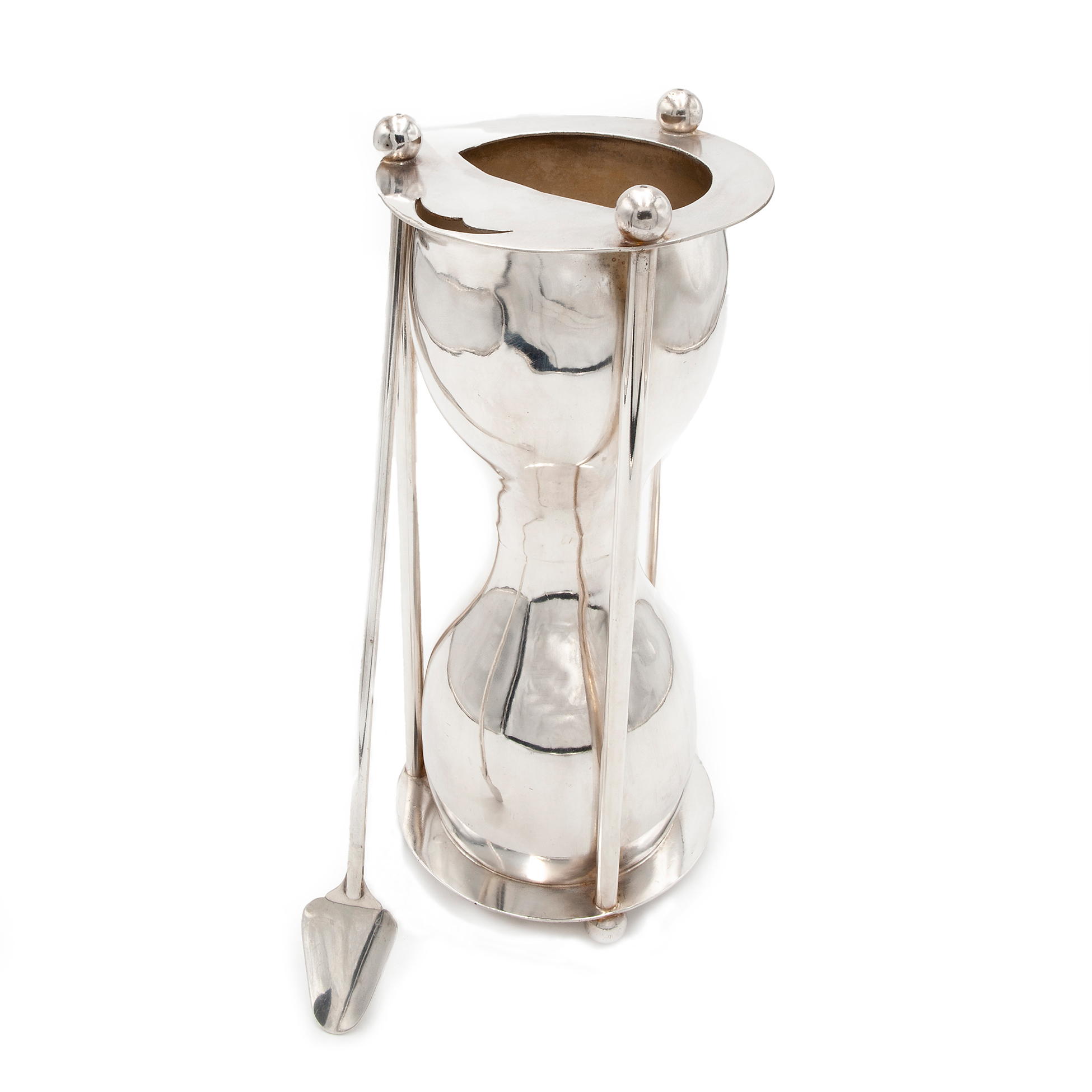 Shaker in forma di clessidra con cucchiaio Interamente manufatta in metallo cromato Dimensioni 28x13 cm.