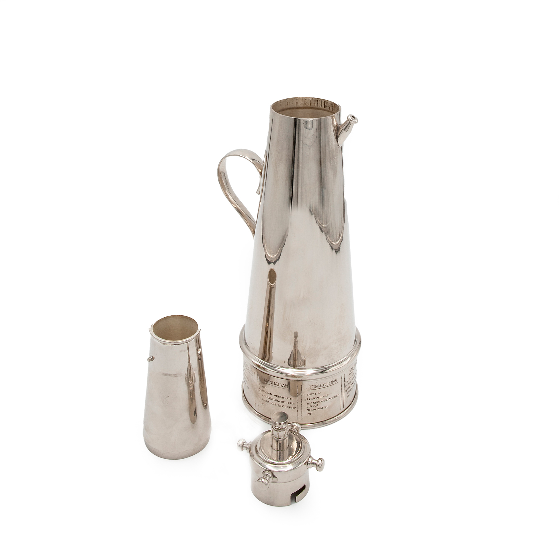Shaker Art Deco in forma di estintore Reca l'iscrizione 'The thirst Estinguisher - instructions for filling'; sul fondo 'N.2261' Dimensioni 38,5x14x10 cm.