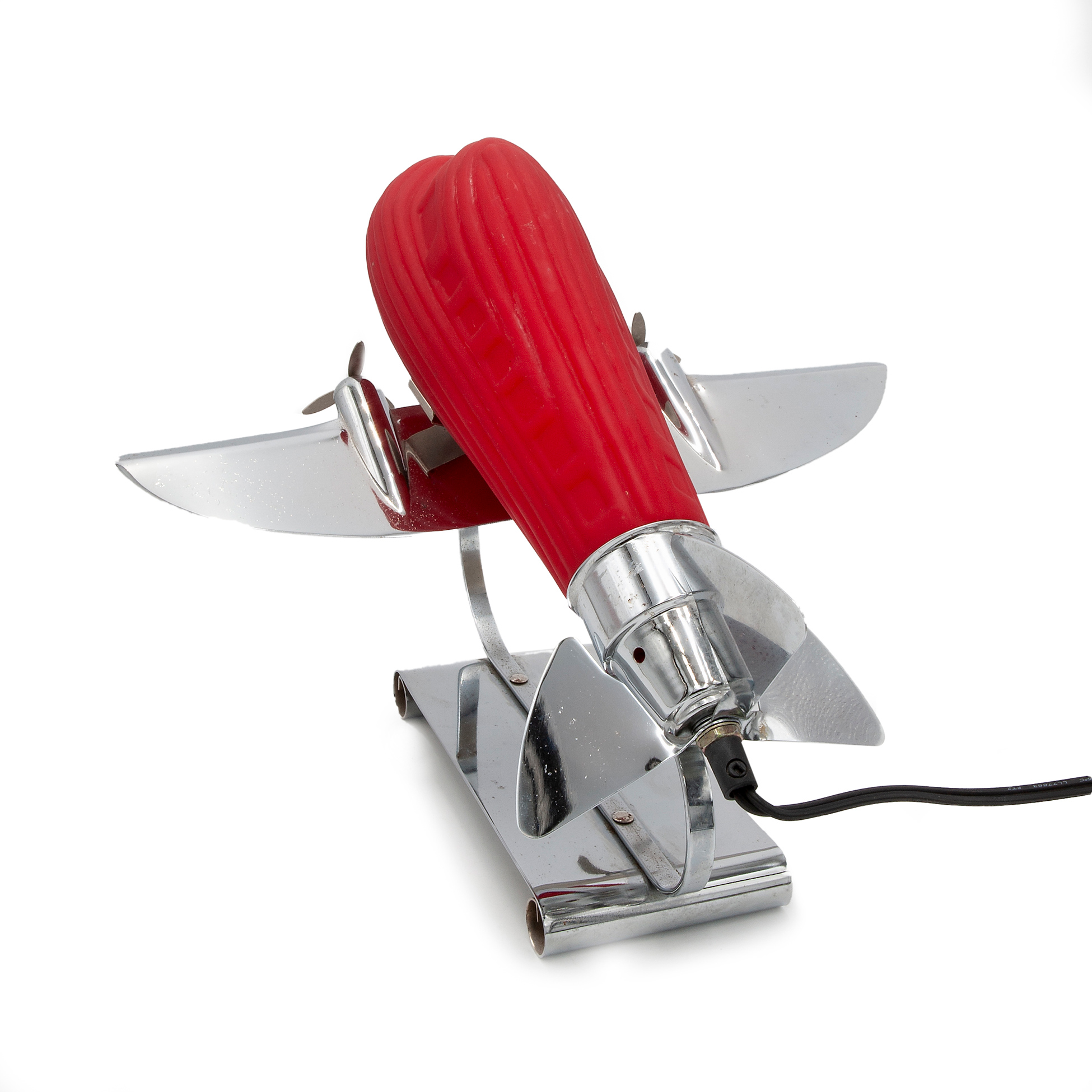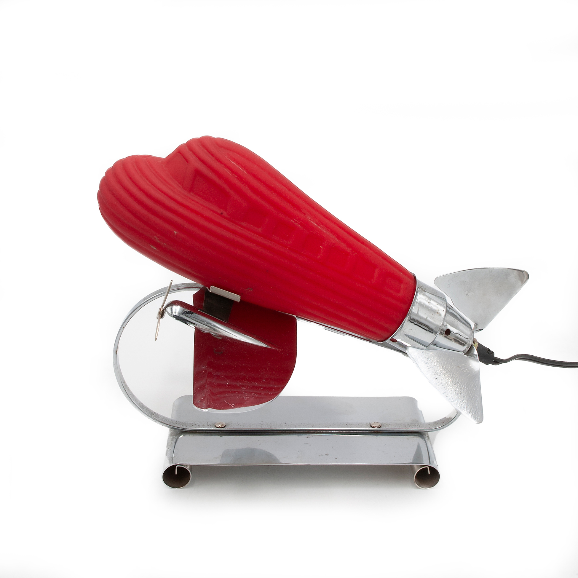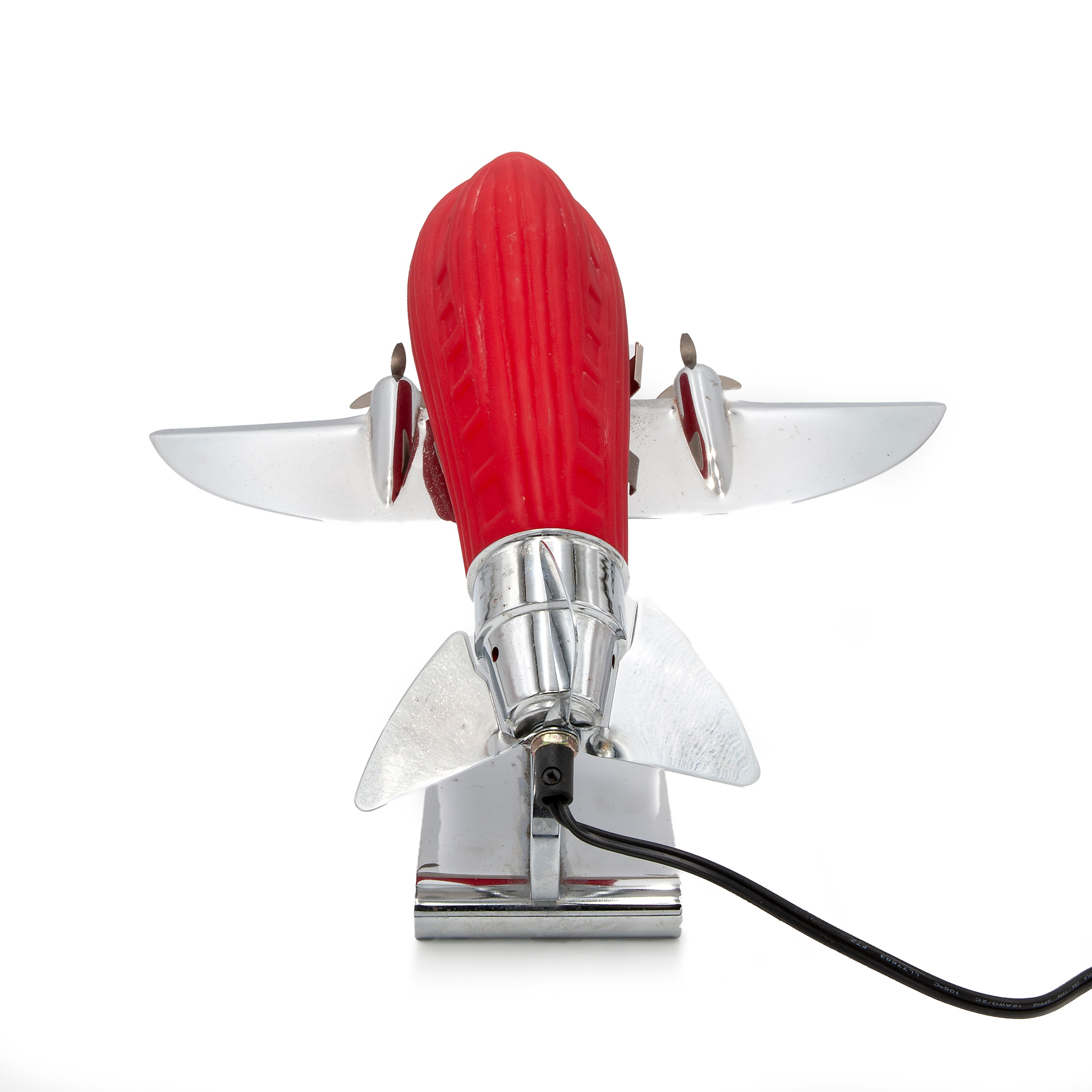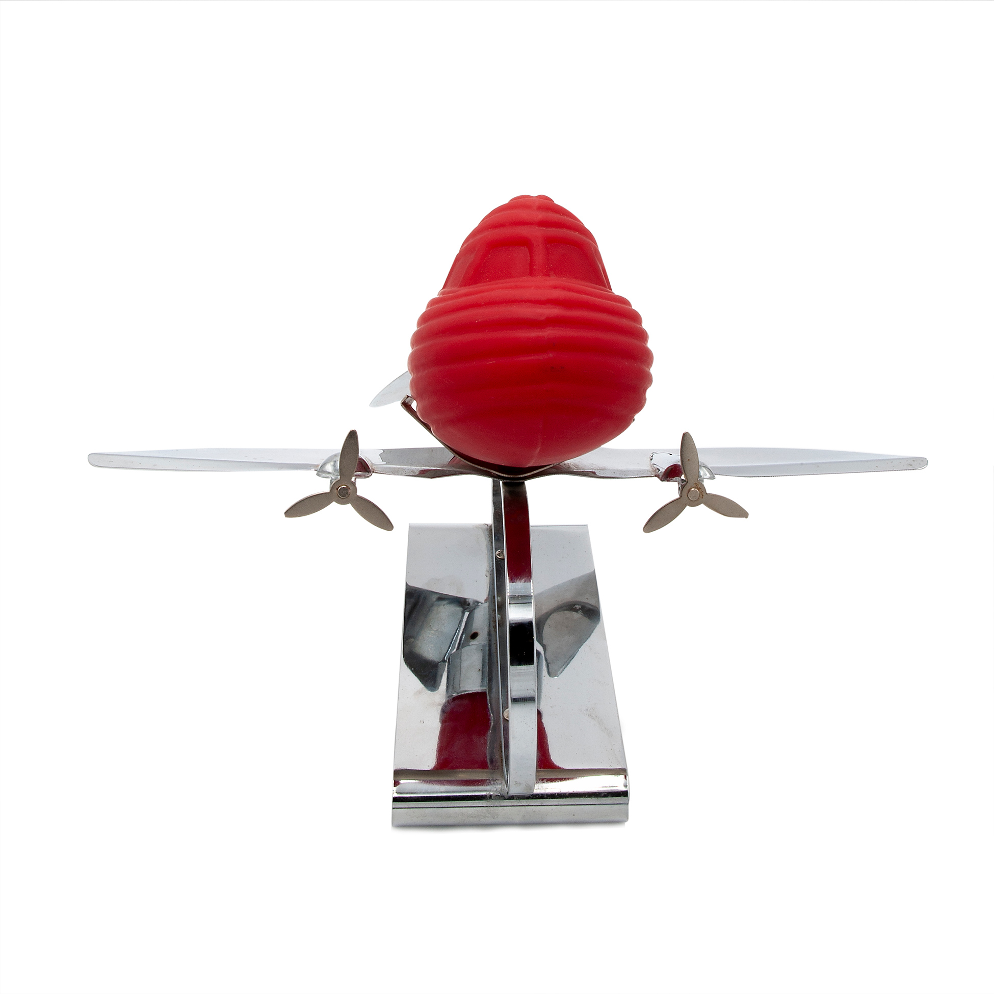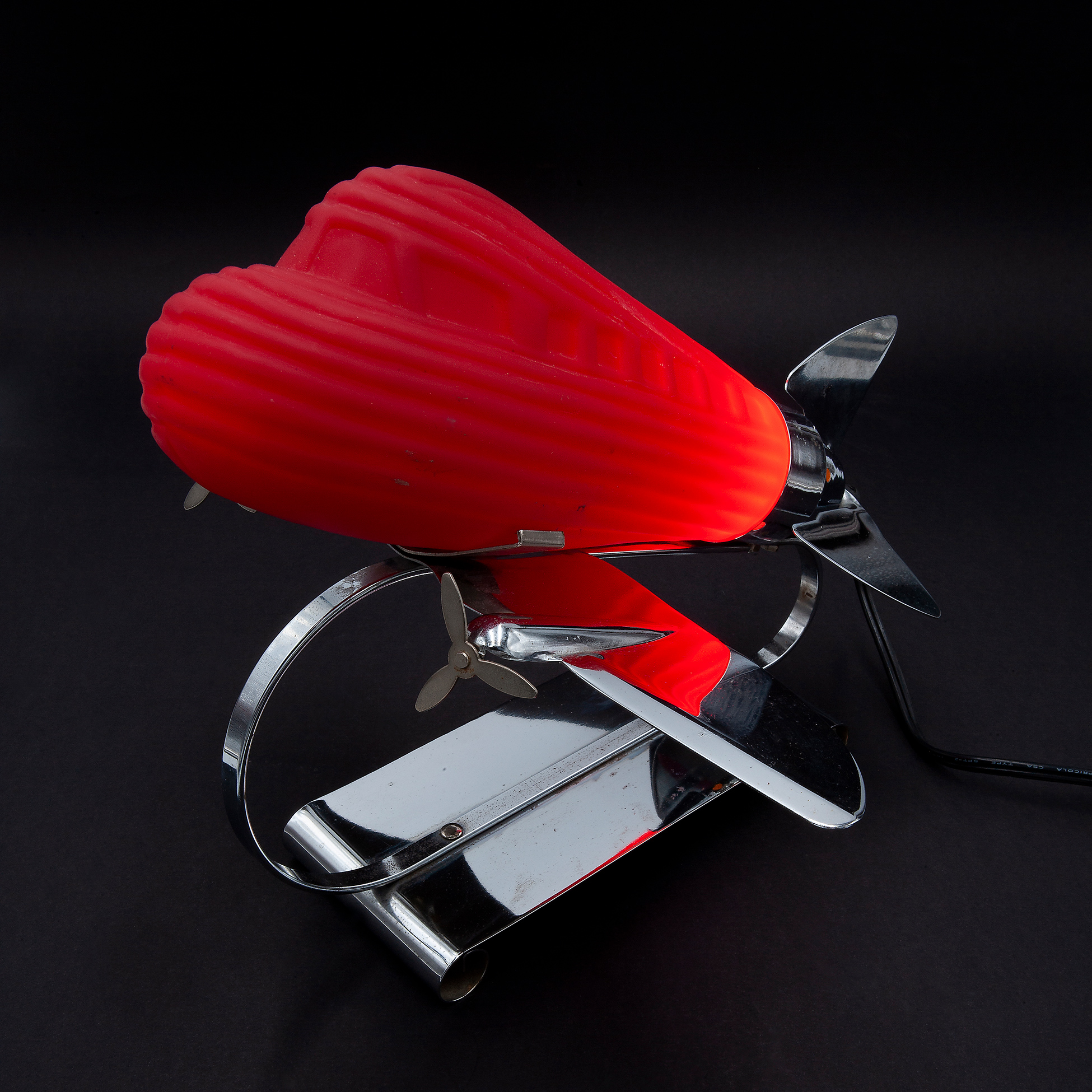 Lampada Deco in forma di aeroplano, Sarsaparilla Composta da corpo in metallo e paralume in vetro rosso, dotata di lampadina funzionante Dimensioni 28x29x33 cm.