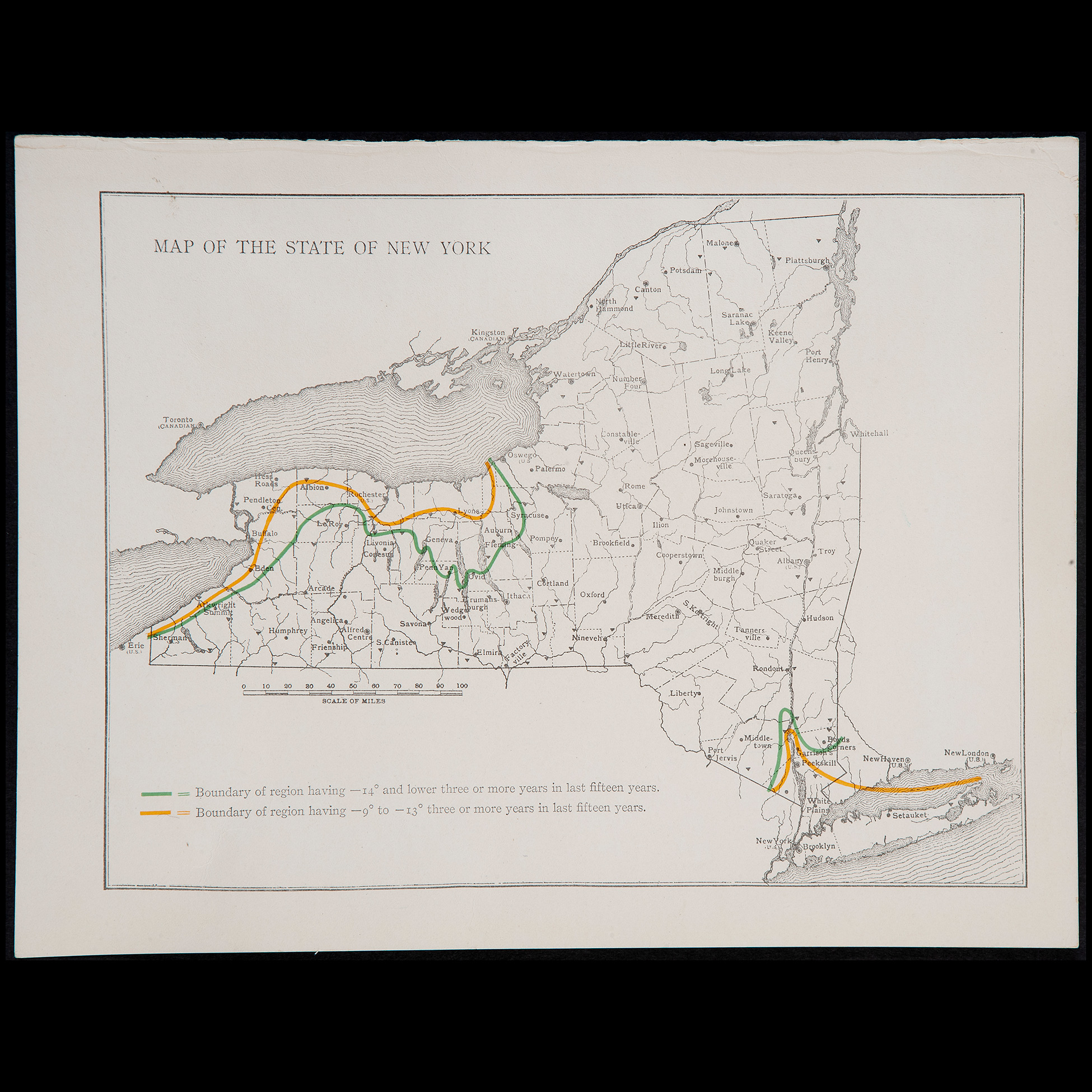 Carta geografica 'Map of the State of New York', XIX secolo Presenti difetti, priva di firme o identificativi e priva di cornice Incisione su rame, dimensioni 22,5x29,5 cm.
