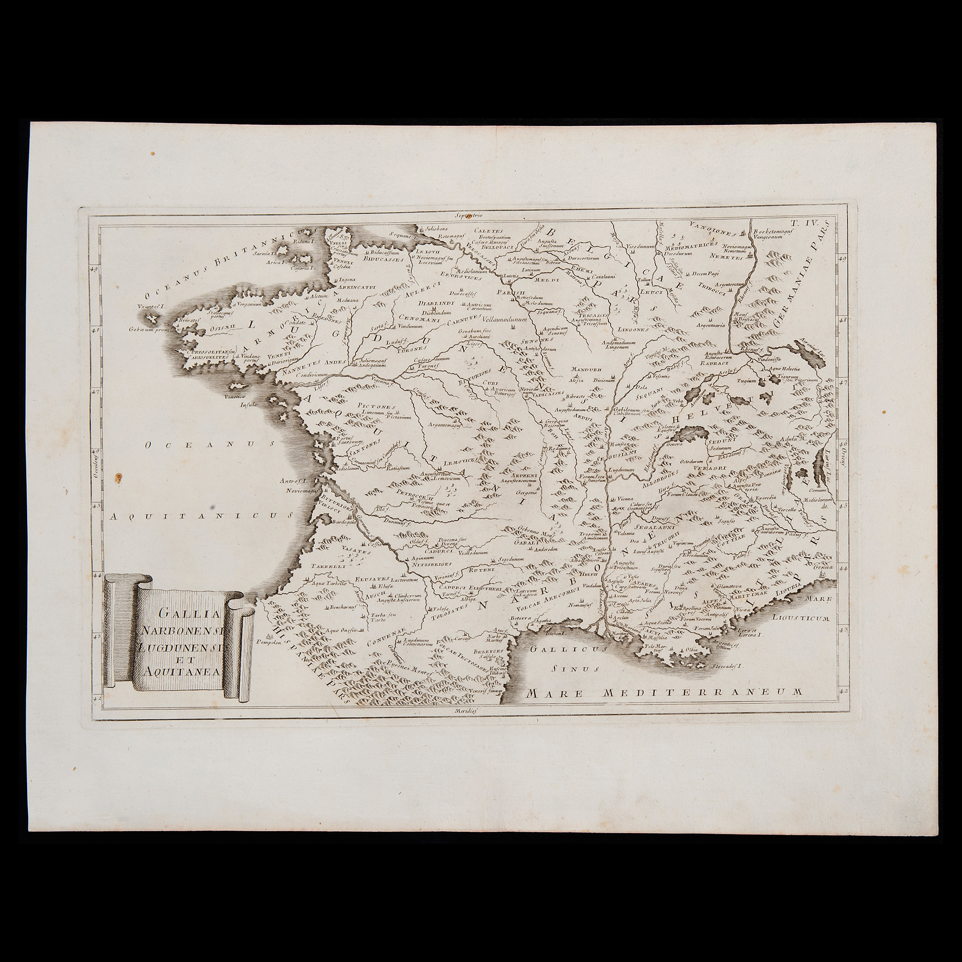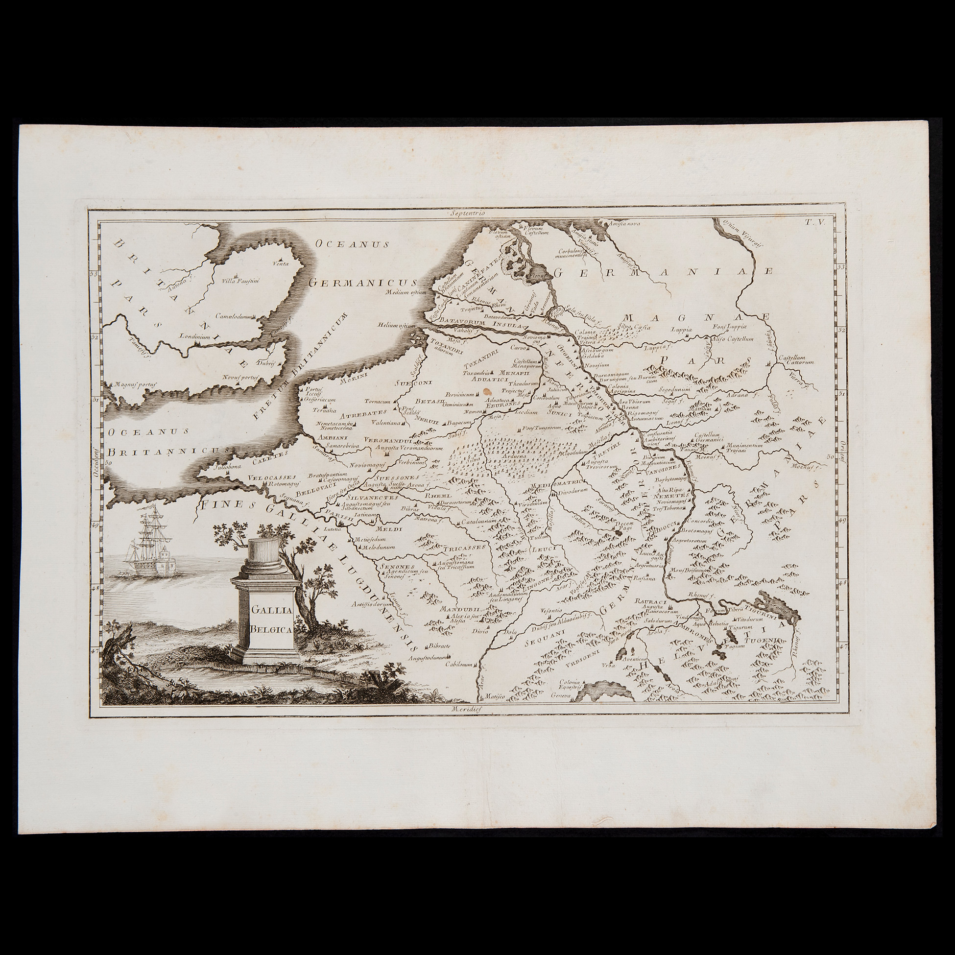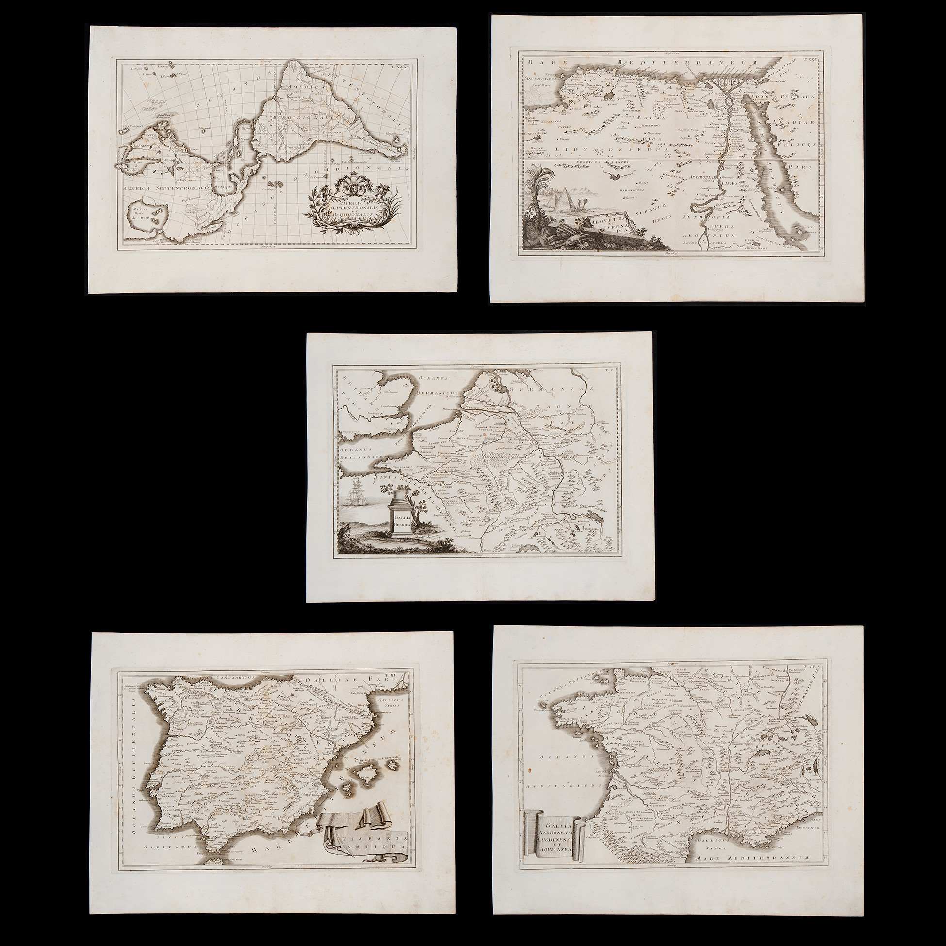 J.B. Ghisi da Andreas Cellarius (Neuhausen ca. 1596 – Hoorn 1665), Cinque antiche carte geografiche, Roma 1774 Serie di incisioni su carta vergellata e filigrana raffiguranti vari paesi del mondo: 'Aegyptus et cyrenaica', 'Gallia Belgica', 'Hispania anti