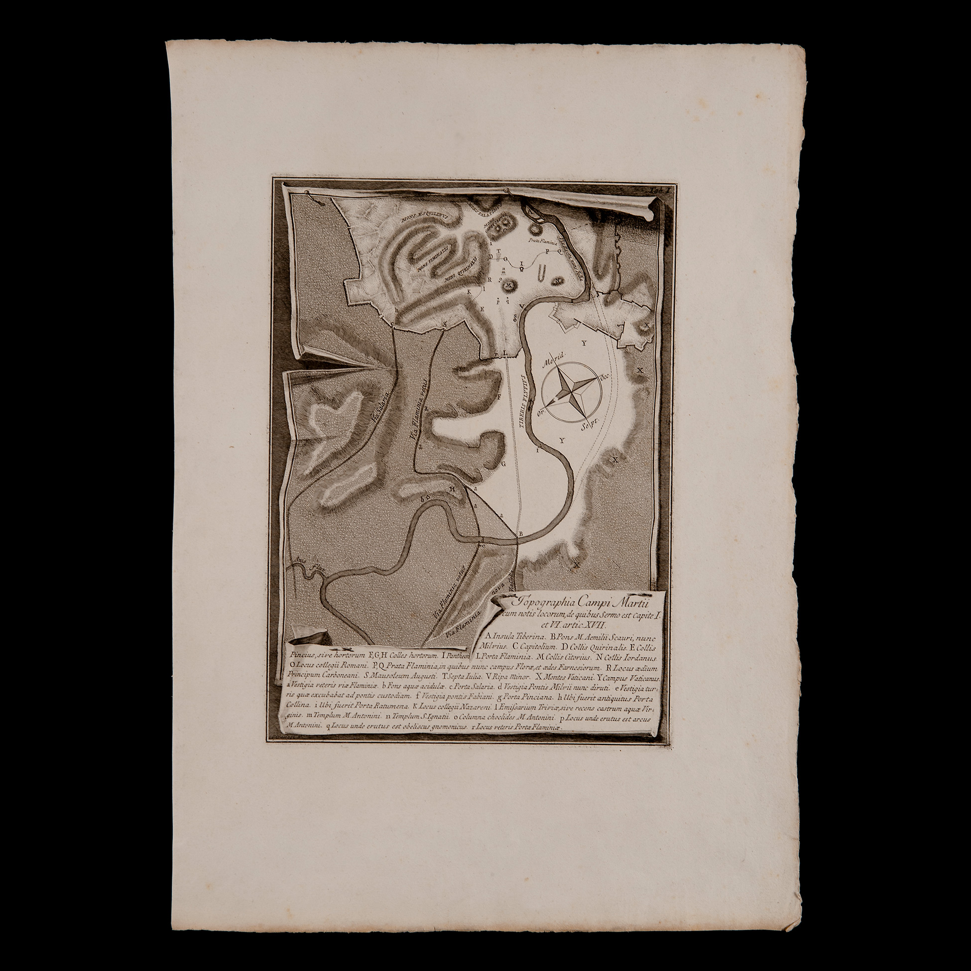 Giovanni Battista Piranesi (Mogliano Veneto 1720 – Roma 1778), Coppia di incisioni dedicate alle antichità romane Incisione che presenta in calce la firma 'Piranesi F.', recanti le iscrizioni 'Topographia Campi Martii cum notis locorum, de quibus Sermo e