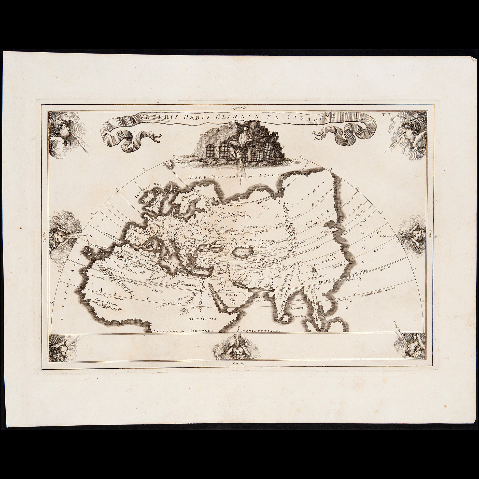 J.B. Ghisi da Andreas Cellarius (Neuhausen ca. 1596 – Hoorn 1665), Quattro antiche carte geografiche, Roma 1774 Serie di incisioni su carta vergellata e filigrana raffiguranti vari soggetti: 'Veteris Orbis climata ex strabone', 'Sphaera armillaris', 'Mer