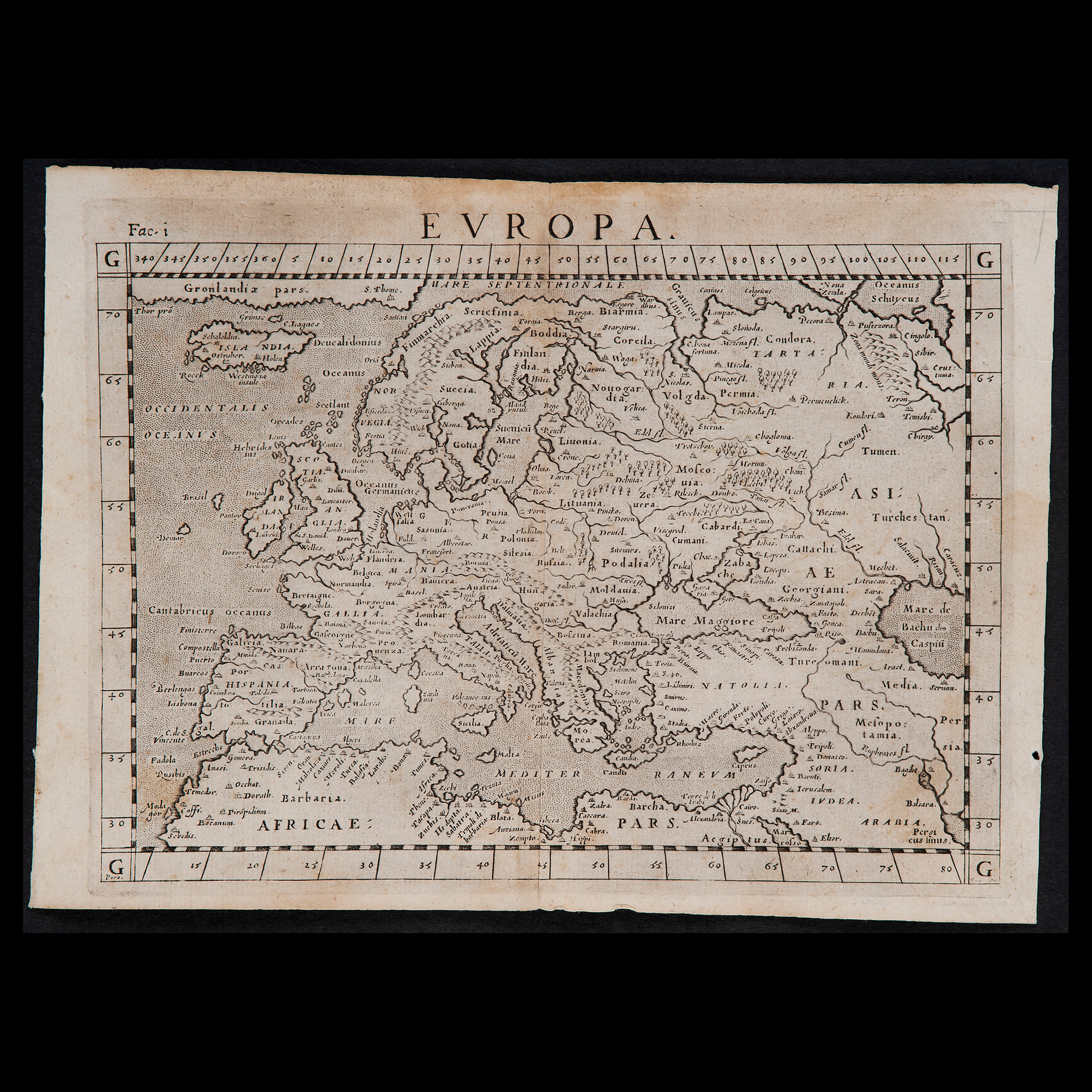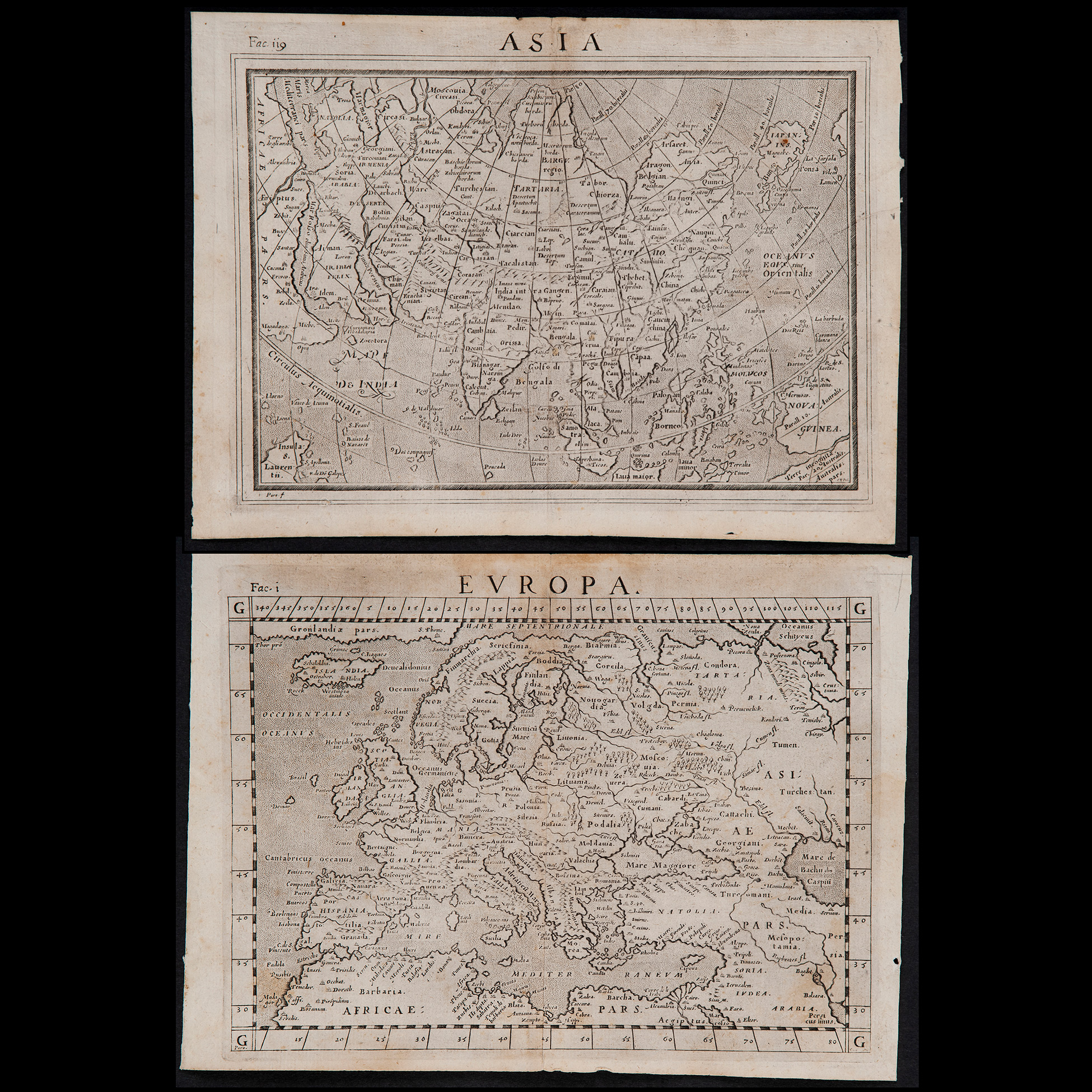 Giacomo Gastaldi (Villafranca Piemonte ca 1500 – Venezia 1566) ?, Coppia di importanti mappe tolemaiche dell'Europa e dell'Asia, Italia XVI secolo Realizzate su carta vergellata, le incisioni raffigurano l'Europa e l'Asia. Presenti difetti, prive di cor