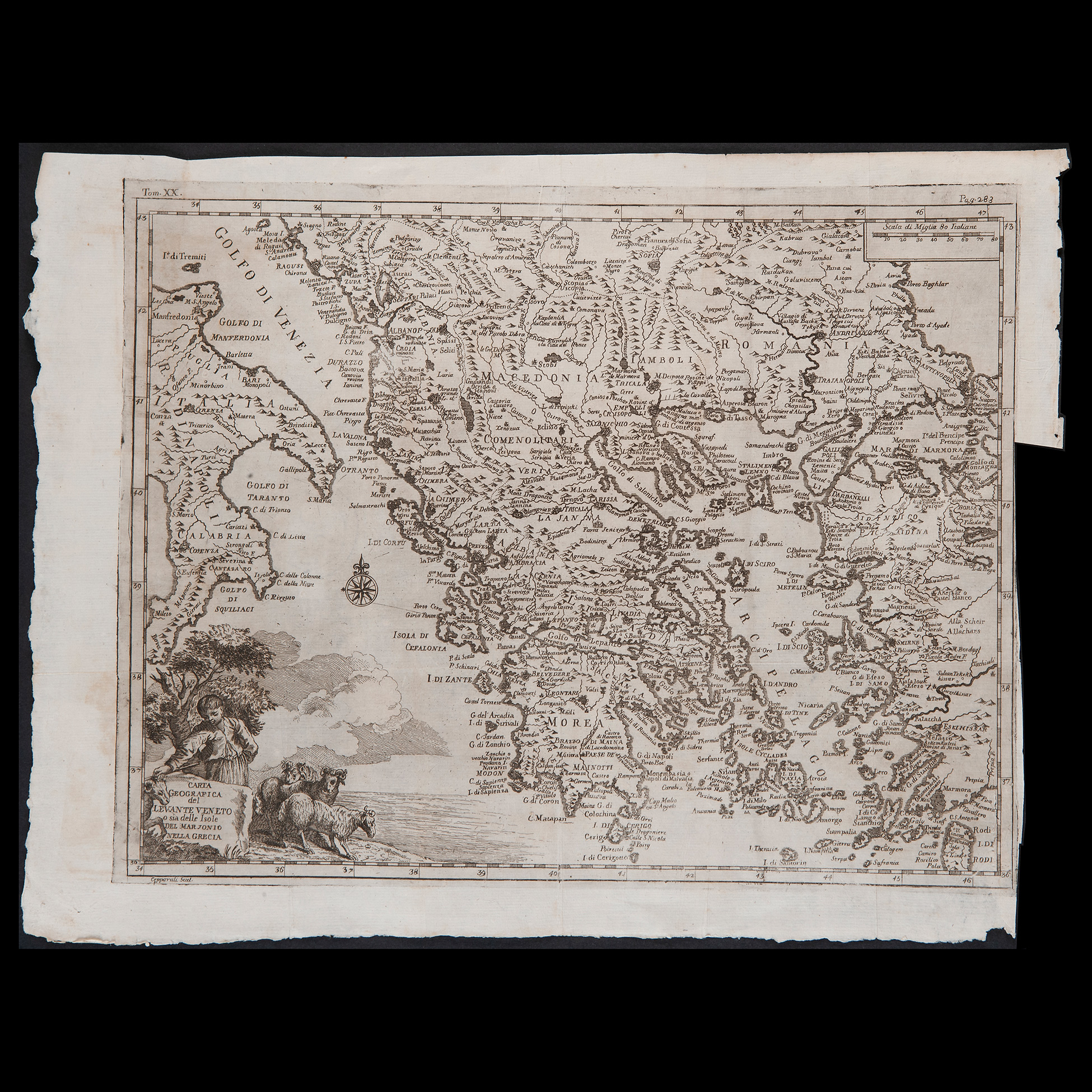 Francesco Cepparuli (notizie 1750-1767), 'Carta geografica del Levante Veneto o sia delle isole del Mar Jonio nella Grecia', Italia ca. 1740 Incisione su carta vergellata e filigrana, reca in calce a sinistra la firma dell'esecutore ' Cepparuli Scul.', p