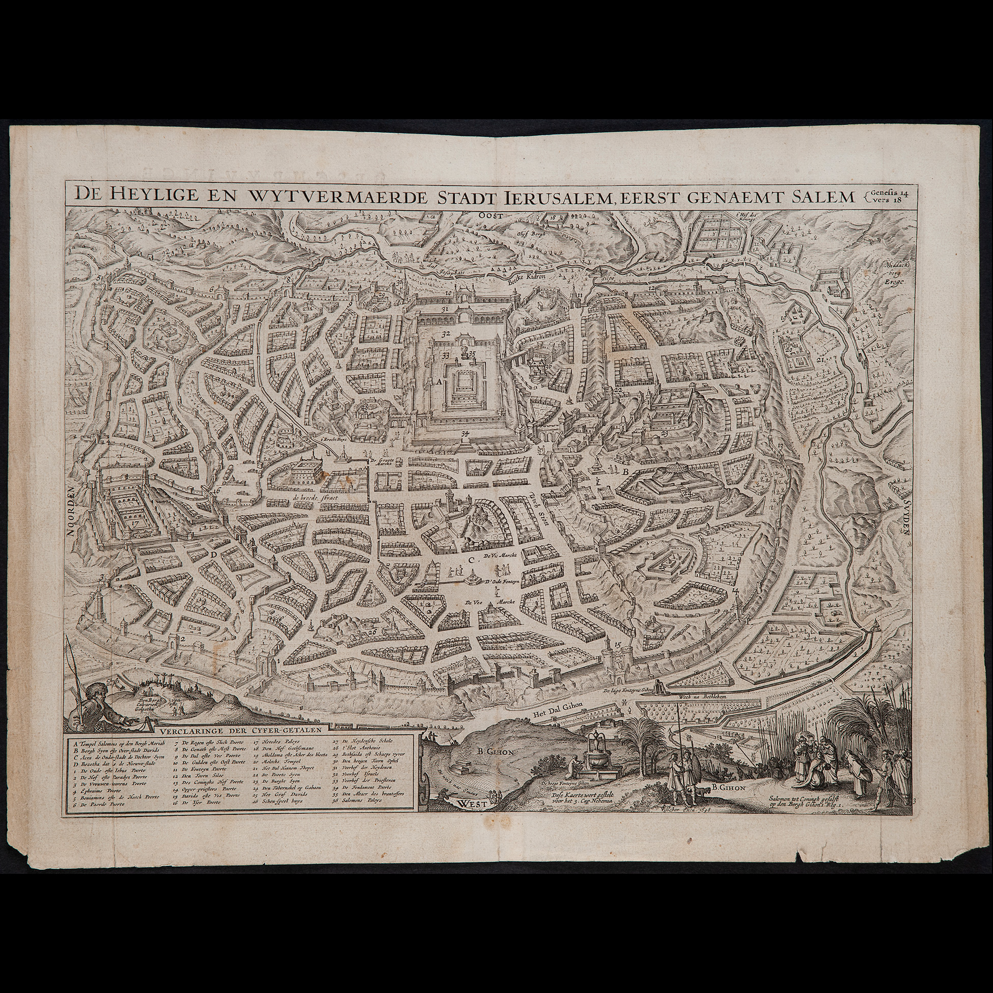 Lot 173 | Claes Janszoon Visscher (Amsterdam 1586 – 1652), Carta geografica 'De heylige en wytvermaerde stadt Ierusalem, eerst genaemt Salem', Amsterdam 1648