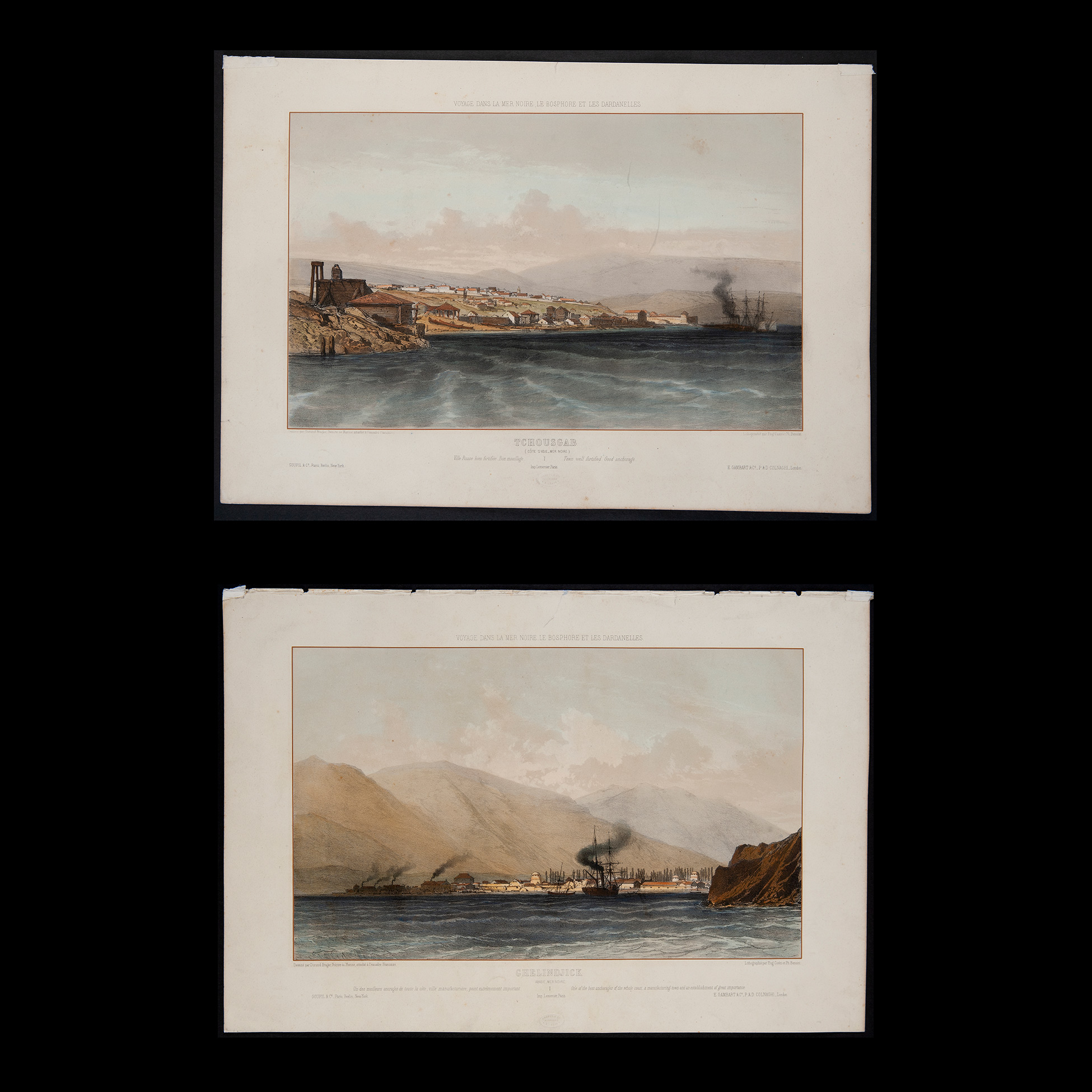 Coppia di litografie francesi 'Voyage dans la Mer Noire, le Bosphore, la Mer de Marmara & les Dardanelles', Parigi 1854