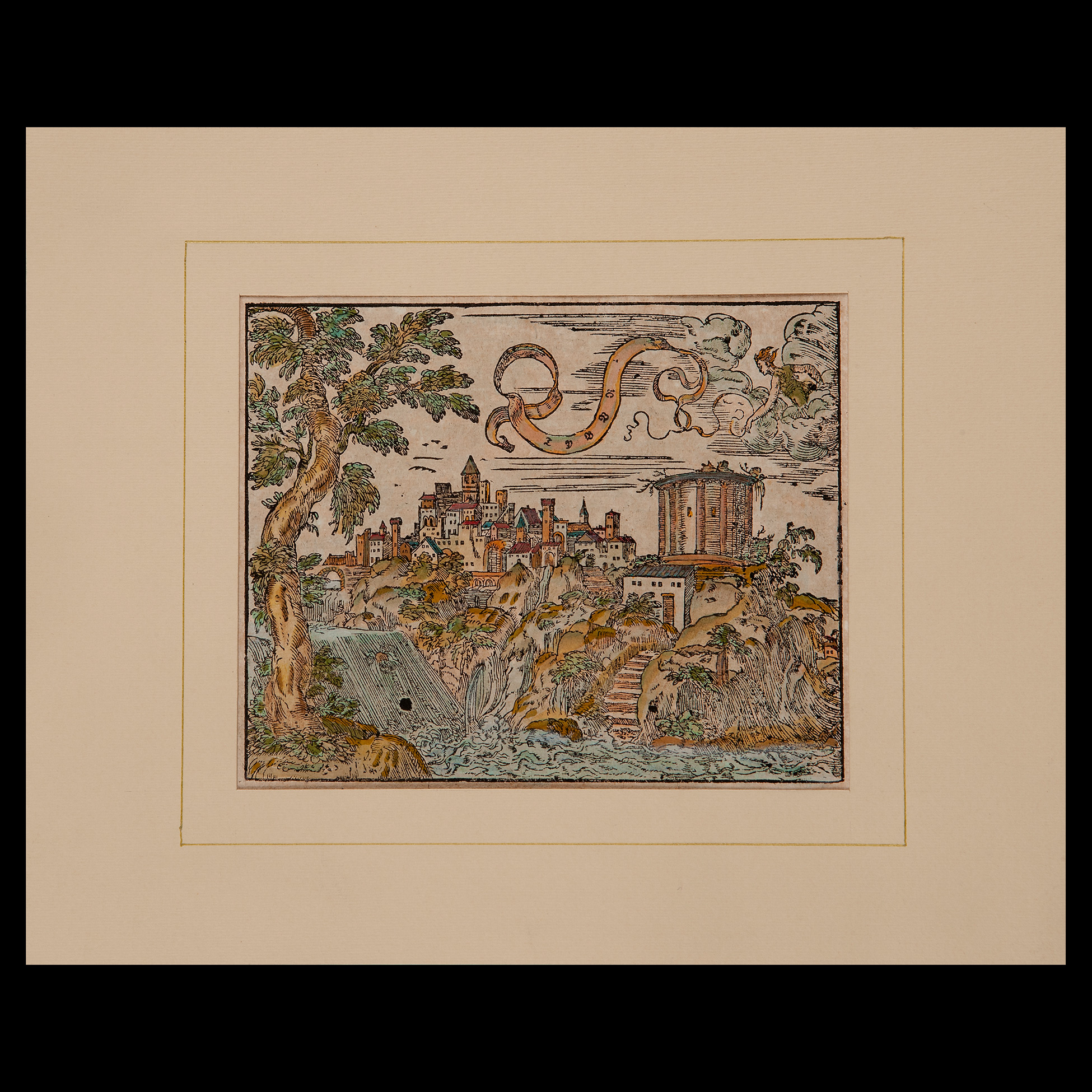 Pregiata incisione dipinta raffigurante Tivoli, Germania XVIII secolo