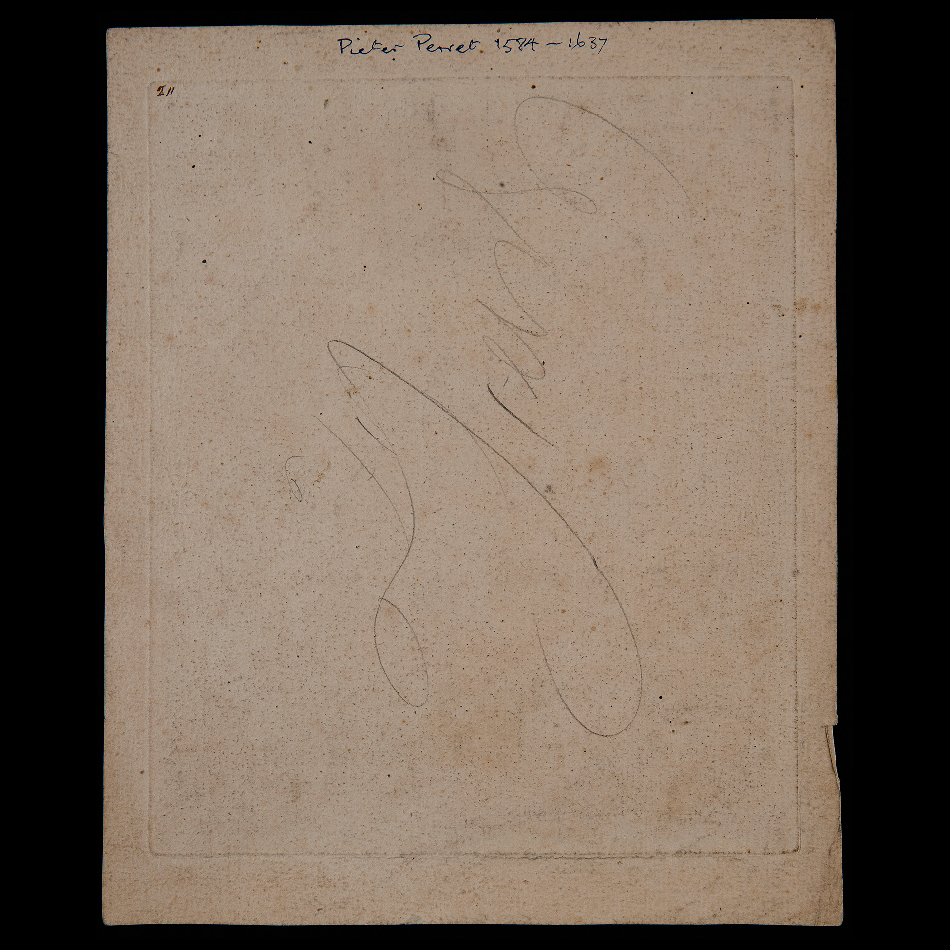 Gabriel Perelle (Vernon 1604 – Parigi 1677), Paesaggio con rovine e viandanti, Francia seconda metà del XVIII secolo Realizzata su carta vergellata, reca in calce l'iscrizione 'Perelle. In, et fé'. Presenti difetti, priva di cornice Incisione su rame, d