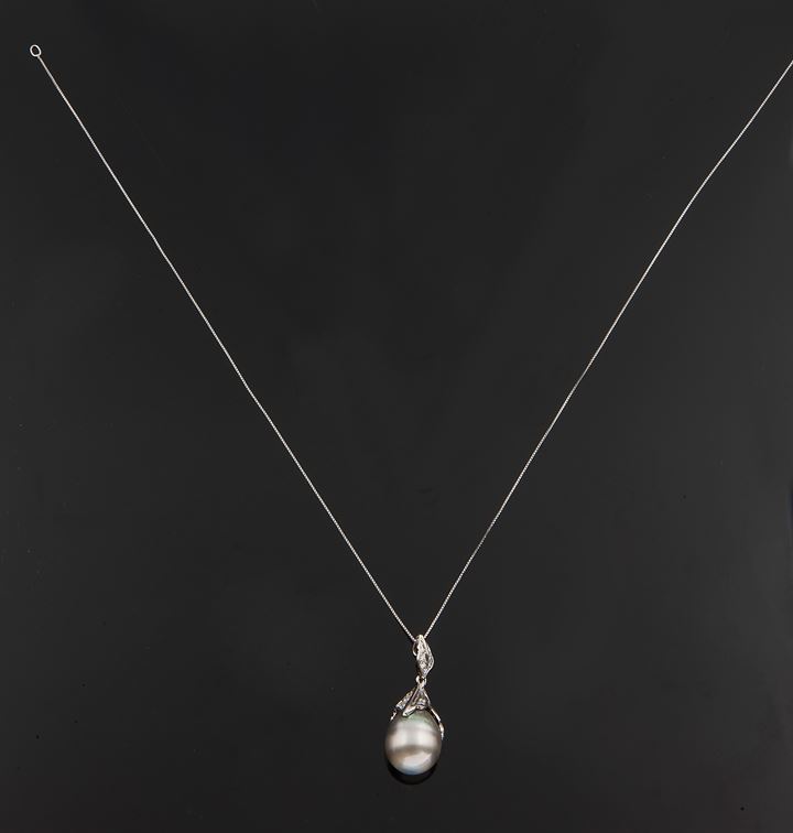 Lot 501 | CATENA CON CIONDOLO Catena con ciondolo in oro bianco con perla Tahiti a pera...