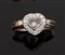 Anello in oro bianco, firmato "Chopard", sommità a forma di cuore; diamanti taglio brillante a contorno e diamante centrale mobile, complessivi ct 0,32 ca