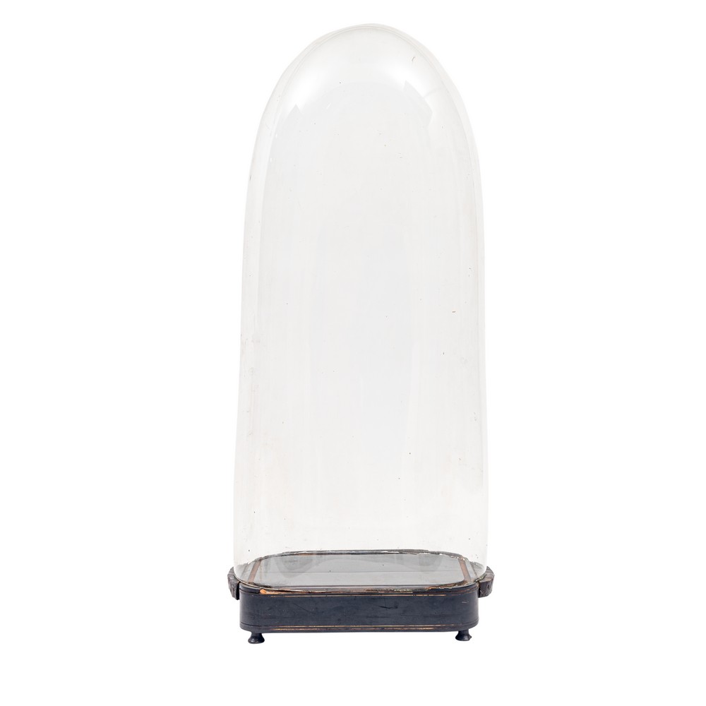 CAMPANA IN VETRO con base in legno ebanizzato.