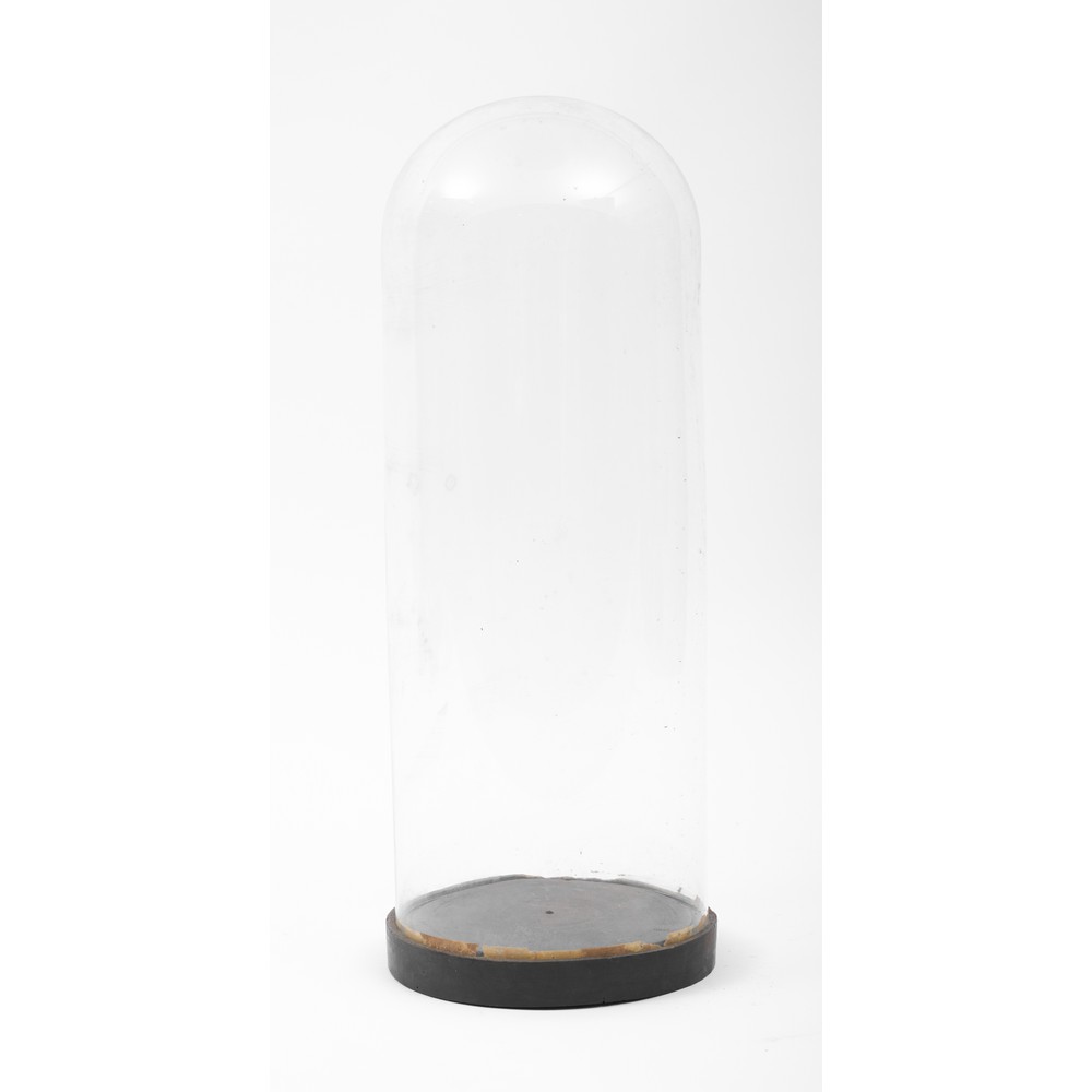 CAMPANA IN VETRO con base in legno ebanizzato.