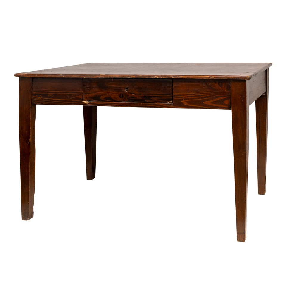 TAVOLO in legno di abete con cassetto.