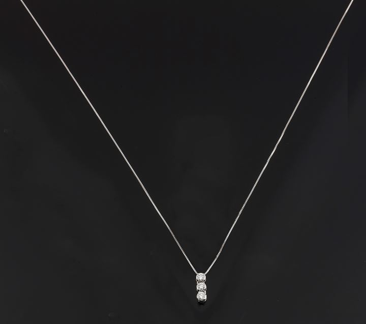 Catena con ciondolo in oro bianco con tre diamanti taglio brillante disposti in verticale