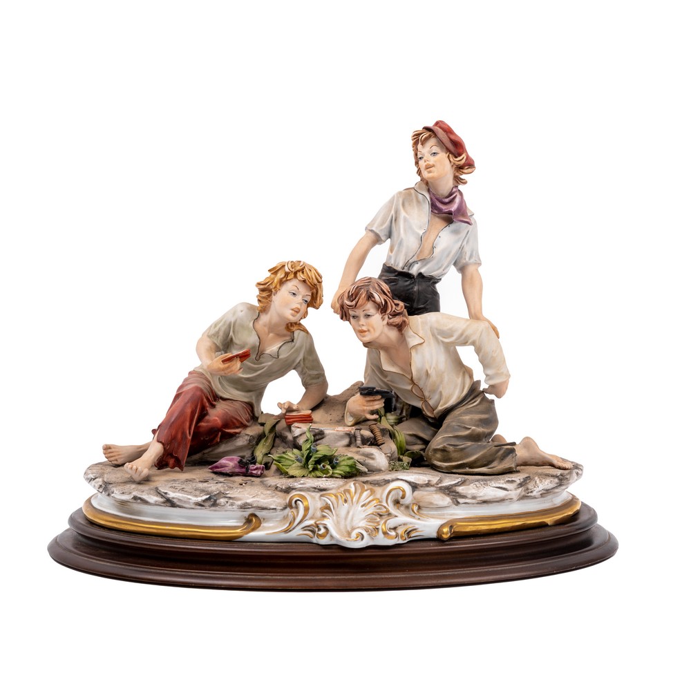 GRUPPO in bisquit policromo Capodimonte raffigurante ragazzi.