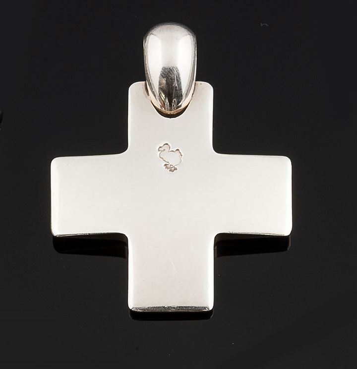 Ciondolo in argento 925 millesimi, firmato "Pomellato", modello "Dodo", a forma di croce