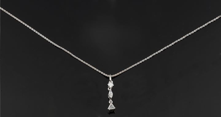 Catena con ciondolo in oro bianco recante tre diamanti taglio brillante,
