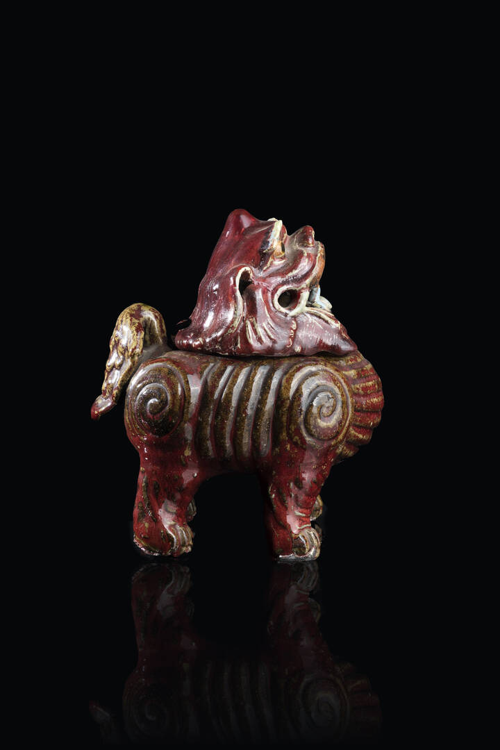 Censer in porcellana flambe con coperchio a forma di drago, Cina, dinastia Qing, XIX secolo.
