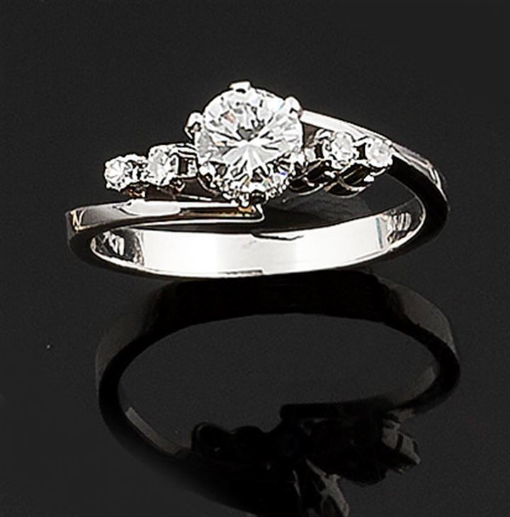 Anello in oro bianco con diamante centrale di ct 0,52 ca ed ai lati piccoli diamanti taglio 8/8 per complessivi ct 0,06 ca