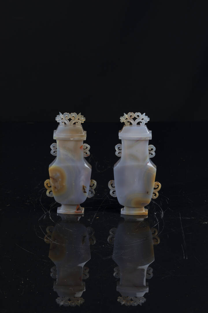 Coppia di vesetti in Agata con tappo, Cina, dinstia Qing, XX secolo.