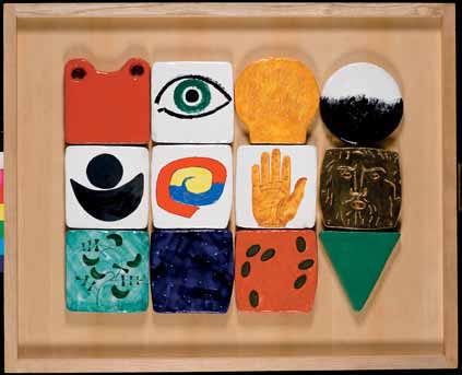 Joe Tilson Londra 1928 The Mask of Dionysos, 1994 rilievo in maiolica, cm 106x86. Al verso etichetta con i dati dell’opera. Dedicato al verso sopra l’etichetta: for Enrico, Joe 1995 L’opera è stata realizzata in collaborazione con la sezione artistica della cooperativa ceramica d’Imola.