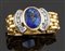 Anello in oro giallo, a fascia, lavorato a maglia morbida con al centro zaffiro sintetico taglio ovale