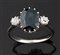 Anello in oro bianco con al centro zaffiro di taglio ovale ed ai lati due diamanti taglio brillante