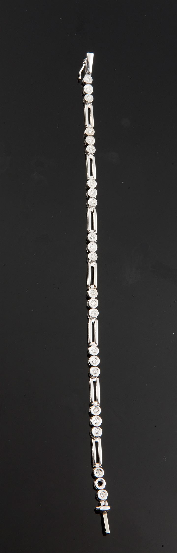 Bracciale in oro bianco composto da segmenti lisci paralleli, disposti a binario, alternati a ventiquattro diamanti taglio brillante per complessivi ct 0,70 ca