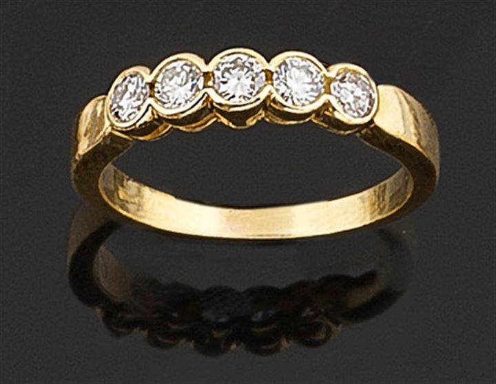 Fedina in oro giallo con cinque diamanti taglio brillante per complessivi ct 0,65 ca