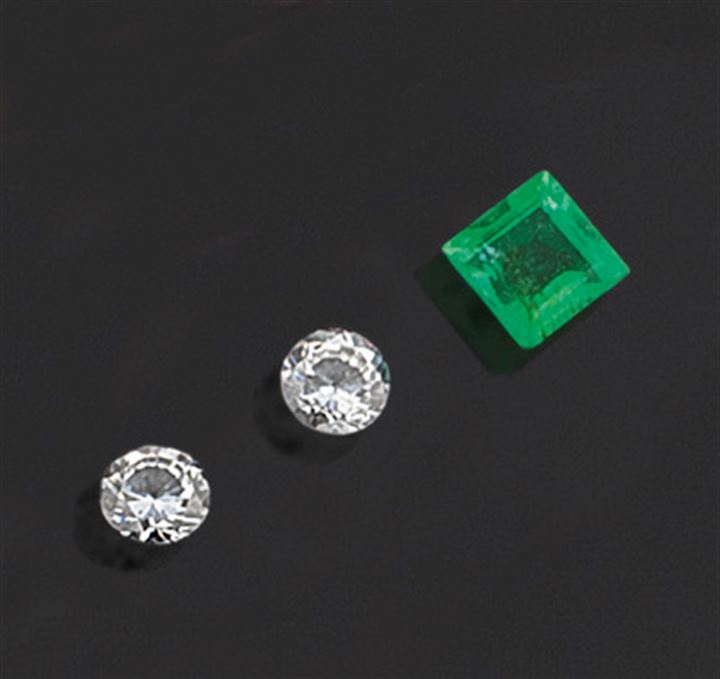 Lotto composto da due diamanti taglio brillante per complessivi ct 1,89 ca ed uno smeraldo taglio rettangolare
