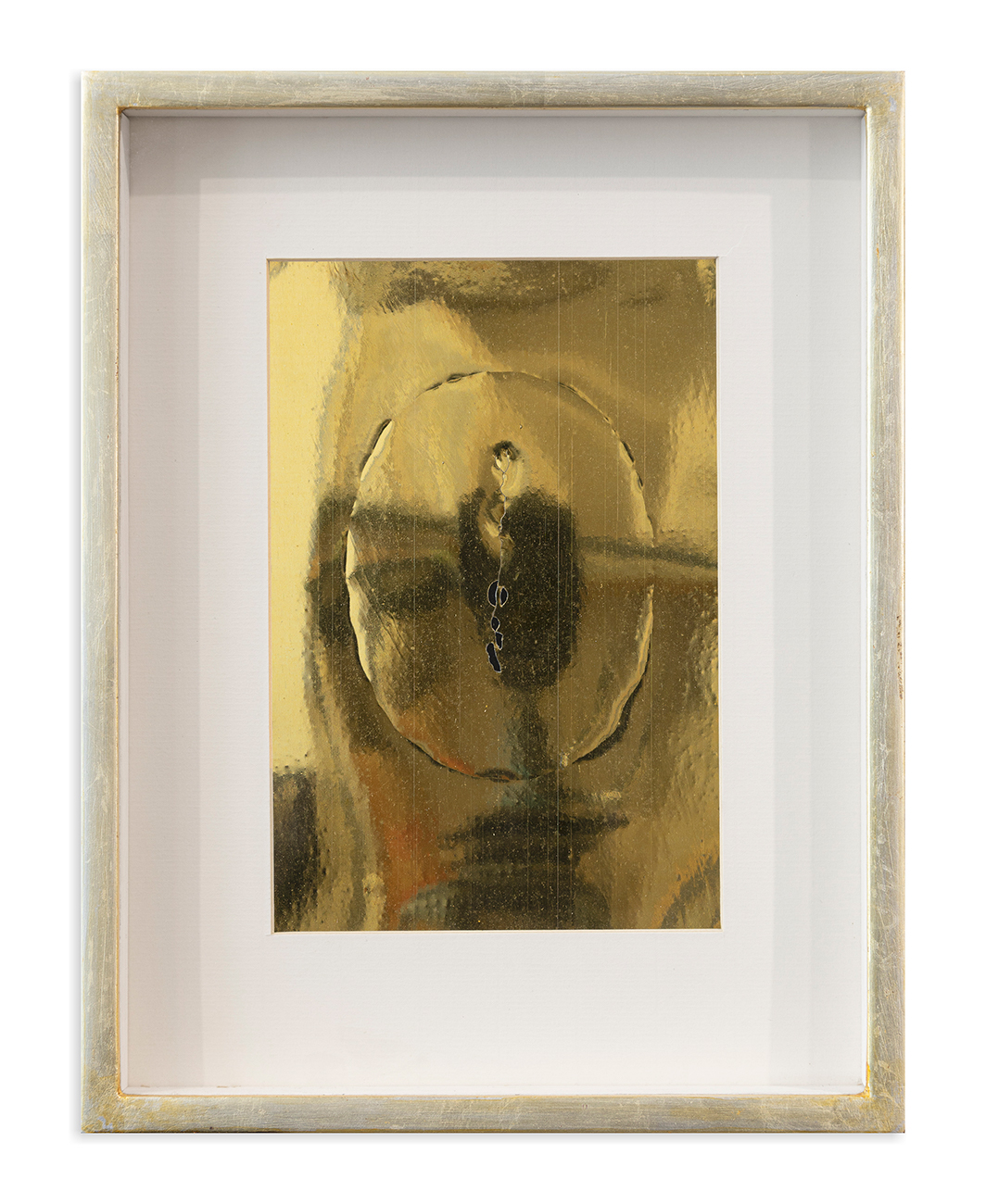 Pighevole della mostra contenente un foglio in lamina dorata e bucata edito in occasione della mosra tenutasi presso la Galeria Rene Metras, Barcellona