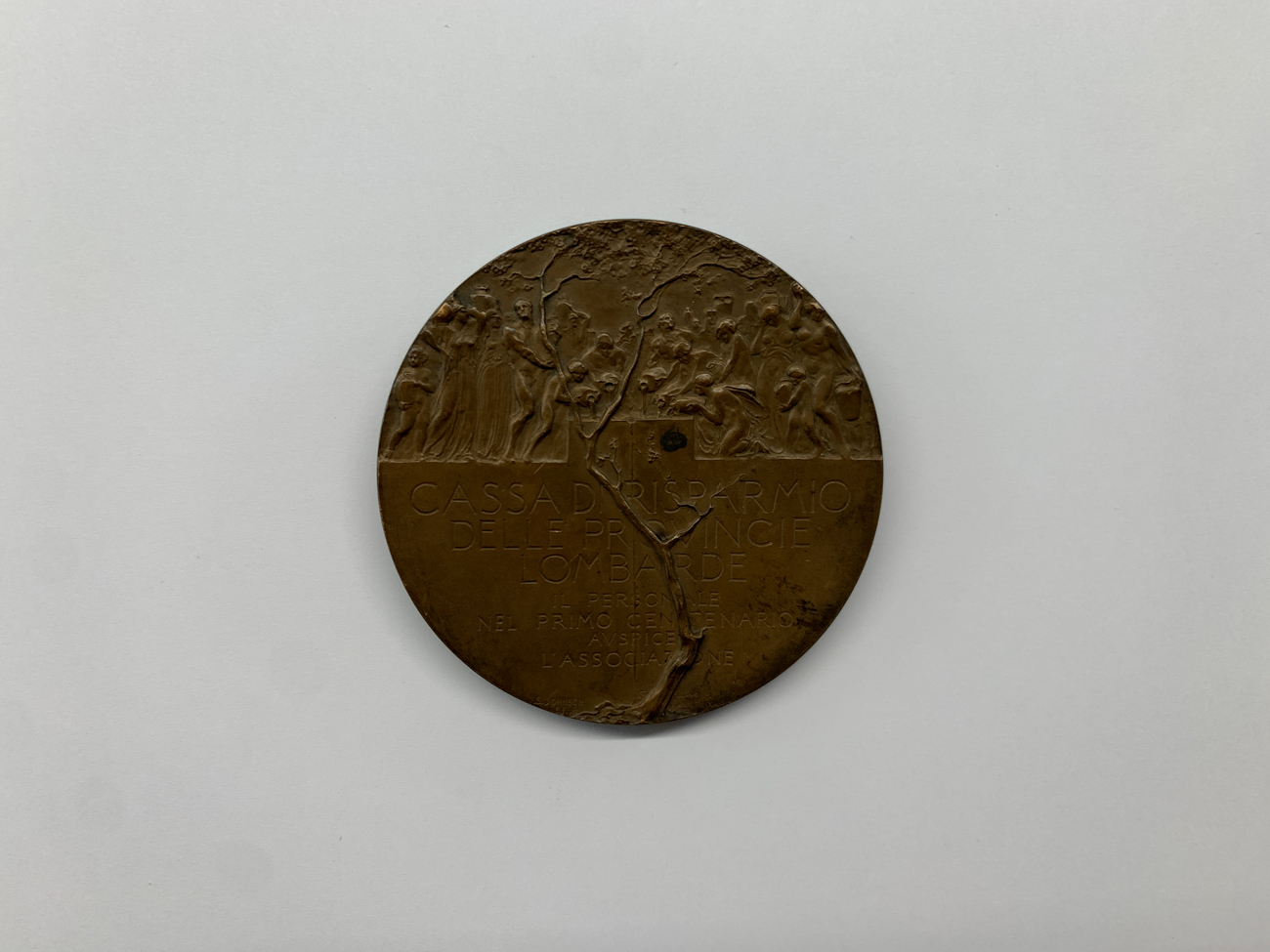 Medaglia coniata edita in occasione del primo centenario della Cassa di Risparmio delle Provincie Lombarde