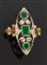 Anello in oro giallo, sommità a losanga, con tre smeraldi taglio rotondo e rettangolare; piccoli diamanti taglio brillante