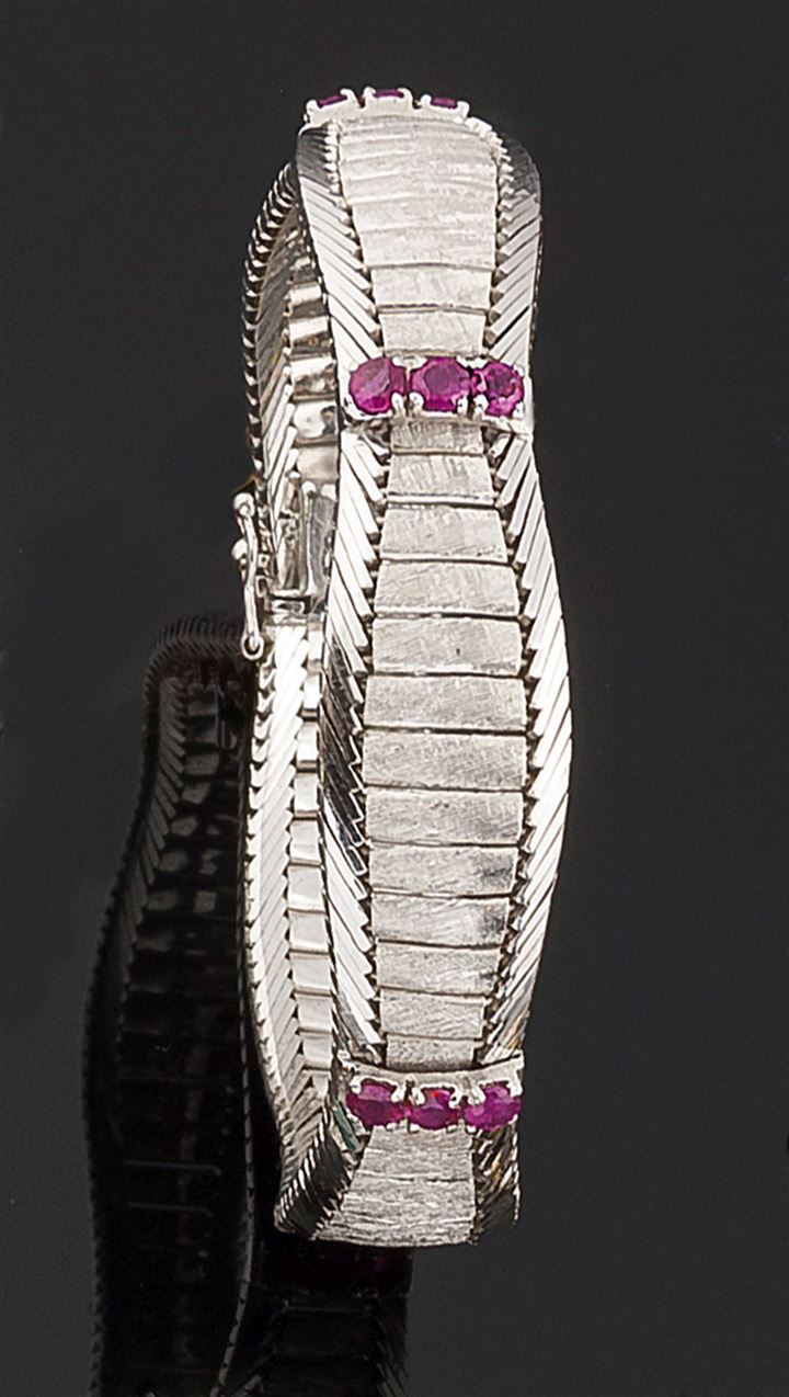 Lot 656 | BRACCIALE Bracciale in oro bianco di forma mossa lucida con parte centrale...