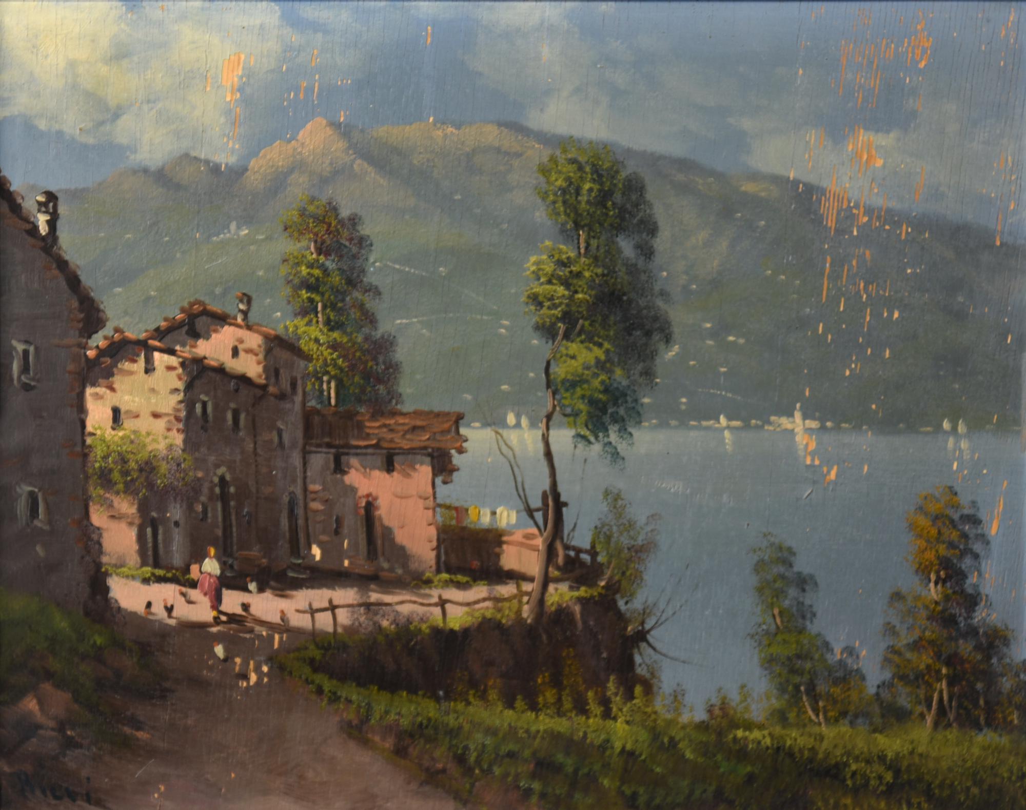Scuola del XIX secolo - inizi XX secolo A firma Ricci VEDUTA DI CASOLARE SUL...