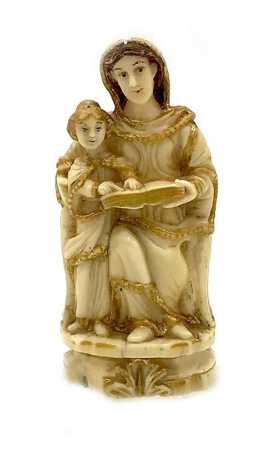 Scuola del XVII secolo MADONNA IN TRONO CON BAMBINO avorio con decorazioni...
