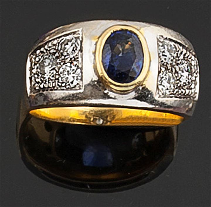 Lot 660 | ANELLO Anello oro giallo con al centro zaffiro di taglio ovale ed ai lati...