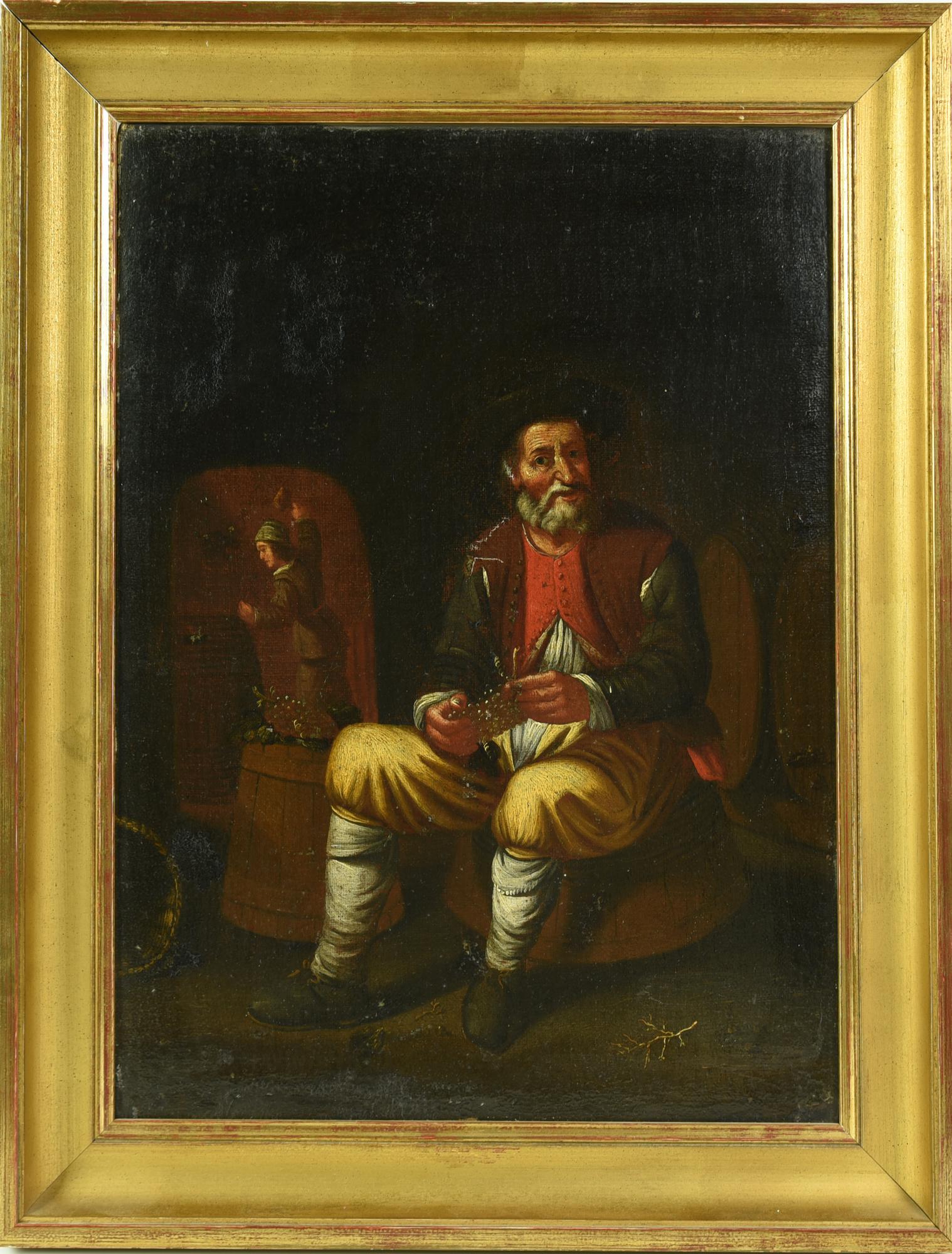 Scuola del XVIII secolo IL RIPOSO DEL VIGNAIOLO olio su tela, cm 45x33