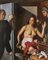 Sciltian attualizza la scena portandola all’interno di un camerino di un moderno teatro, lo intuiamo anche dalla locandina parzialmente visibile sullo sfondo. I due anziani irrompono al suo interno sorprendendo Susanna a seno scoperto mentre è intenta a cambiarsi dopo una rappresentazione. Uno di loro porta con sé un mazzo di fiori e si sporge dalla porta per guardare la bella Susanna mentre l’altro rimane ancora sulla soglia. La donna ha una reazione di imbarazzo e di timore al loro arrivo, intuiamo che si tratta di una ballerina dalle tipiche scarpette sistemate in primo piano su una valigia. Sciltian si concentra su diversi dettagli che concorrono alla narrazione della scena, come i trucchi sistemati sul tavolino su cui è riposto uno specchio, le unghie smaltate di rosso, la fede sulla mano sinistra, il paravento sullo sfondo con tre battenti sul quale si proietta una luce dal taglio chiaramente caravaggesco.