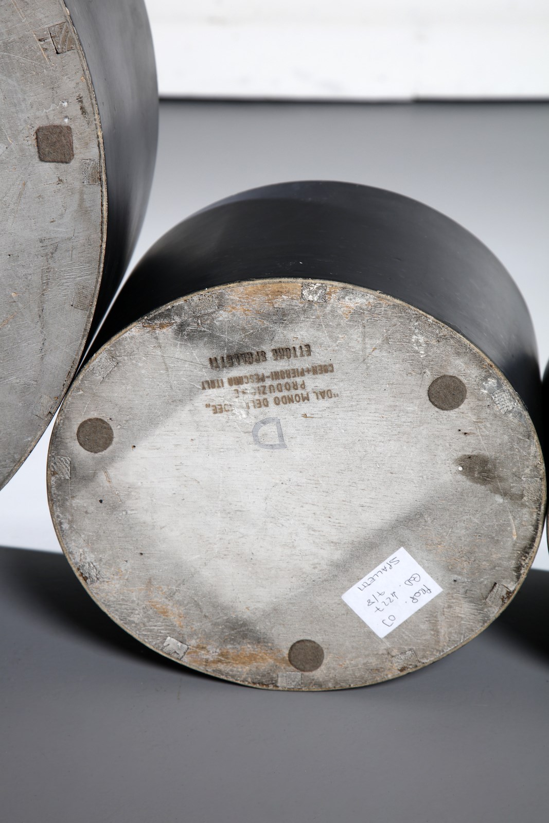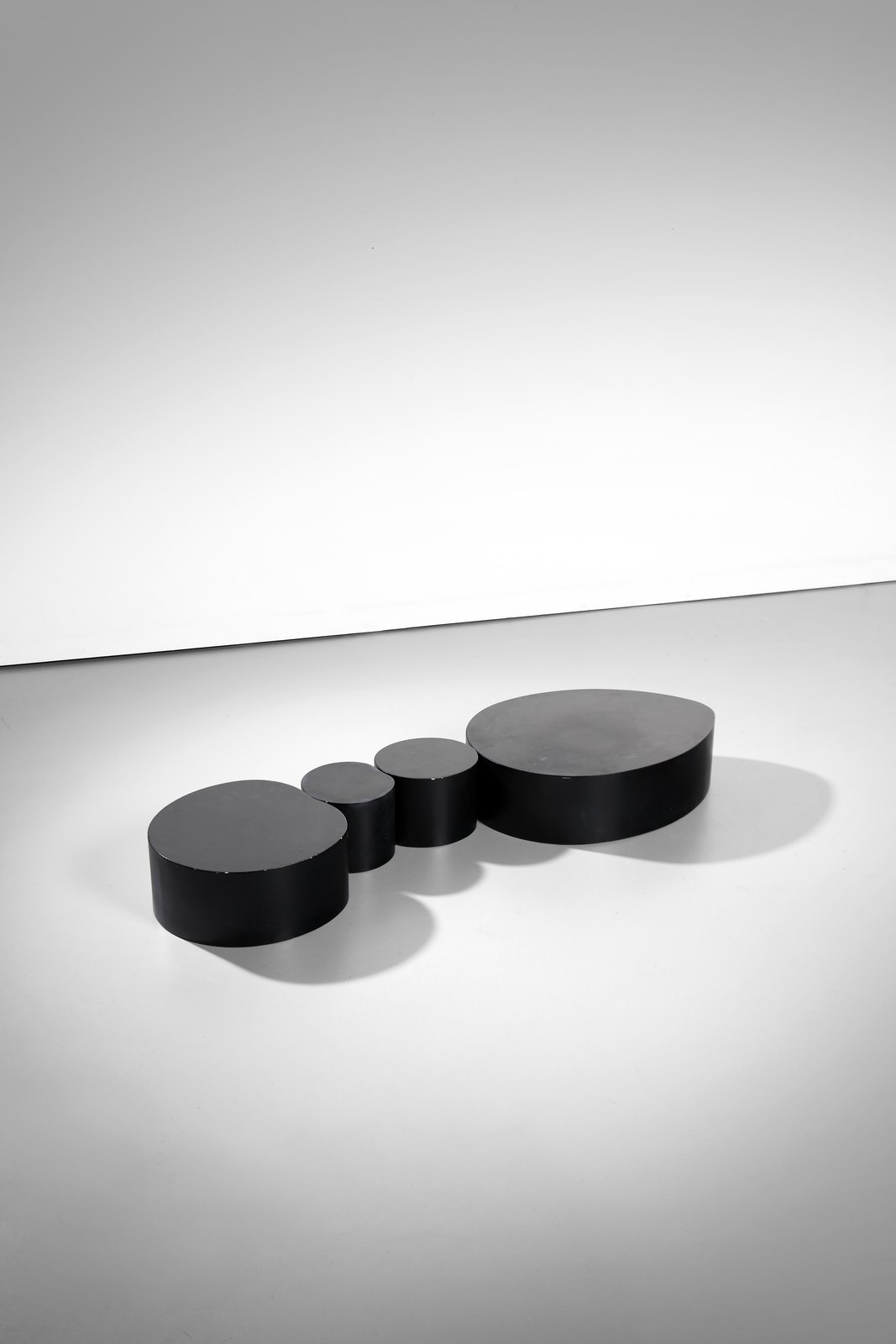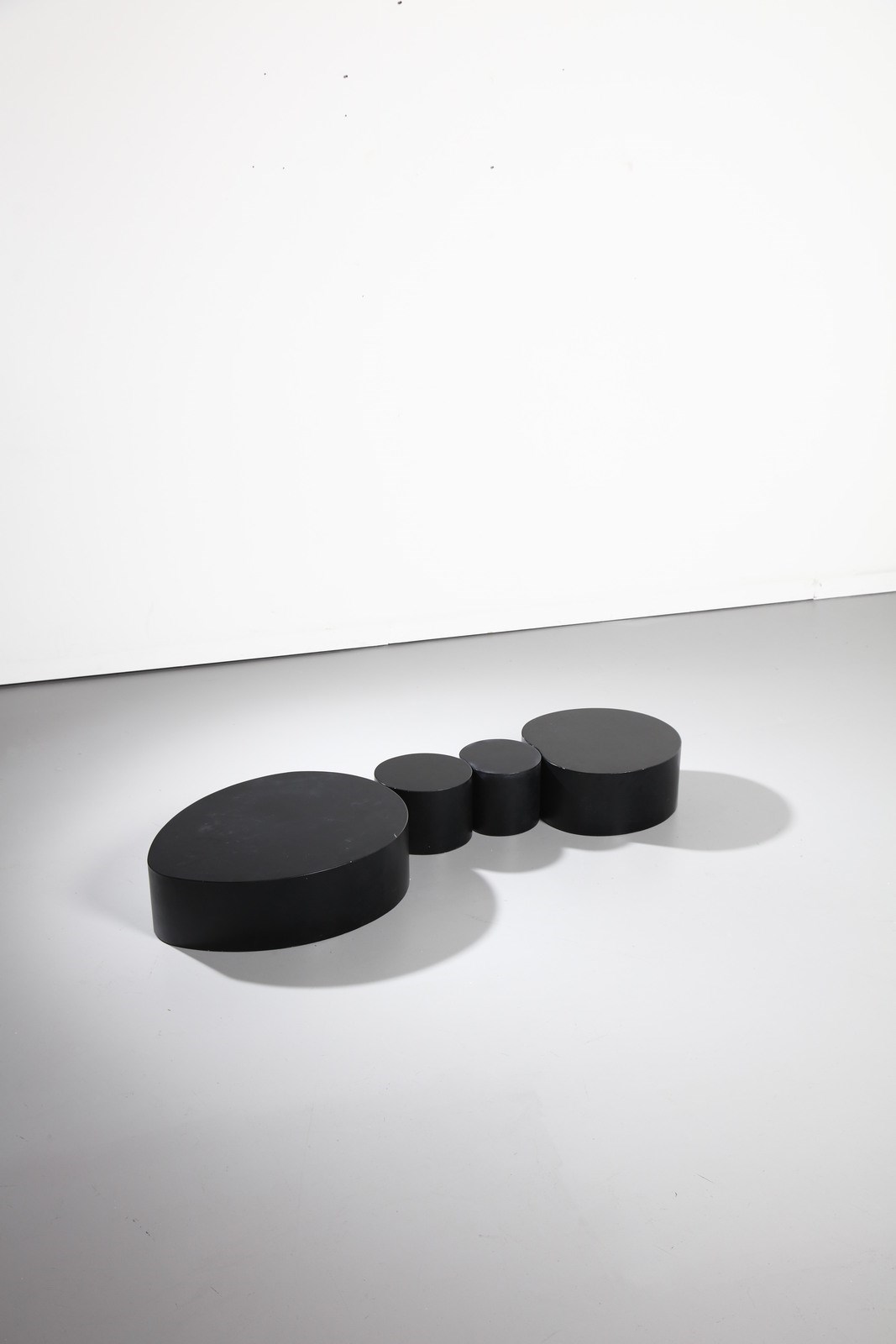 SPALLETTI ETTORE (n. 1940) Forme (Nero). 1969. Legno laccato.. Cm 181,00 x 22,00 x 61,50. Esemplare composto da quattro elementi indivisibili. Firma e anno sulla base. Edizione "Dal Mondo delle idee”, Coen e Pieroni, Pescara. Dimensioni singoli pezzi: 22x30x27.5 cm; 22x26.5x25 cm; 22x51.5x50.5 cm; 22x61.5x80 cm. L'edizione totale doveva comporsi da 80 esemplari ma, tra il 1969 e il 1972, ne sono stati realizzati un numero inferiore. Si ringrazia lo Studio Spalletti, Pescara, per aver contribuito alla stesura della scheda. Provenienza: Collezione privata, Roma. Difetti.