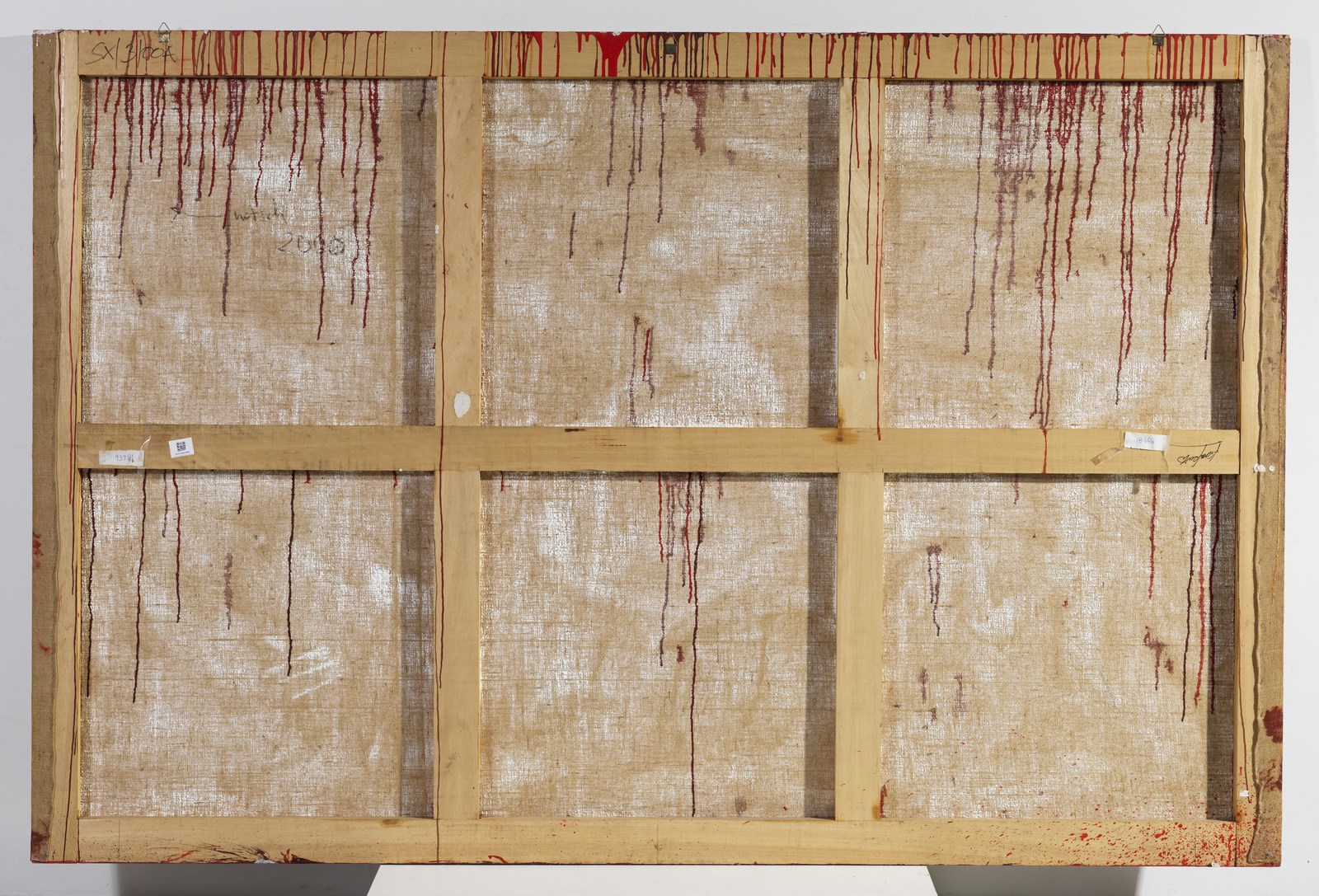NITSCH HERMANN (1938 - 2022) Schuttbild. 2000. Tecnica mista su tela. Cm 285,50 x 190,00. Firma e anno al retro. Pubblicazione: Arte, Novembre 2009, N.435, pag. 138-139. Provenienza: Sant'Agostino, Torino; Collezione privata, Pescara. Opera archiviata presso L'Archivio Hermann Nitsch, Napoli, come da documentazione fotografica allegata all'opera. Esposizione: Nitsch aTorino per Sant'Agostino a cura di Paul Renner e Vanessa Carioggia, Torino, 24 Ottobre -14 Novembre 2009.