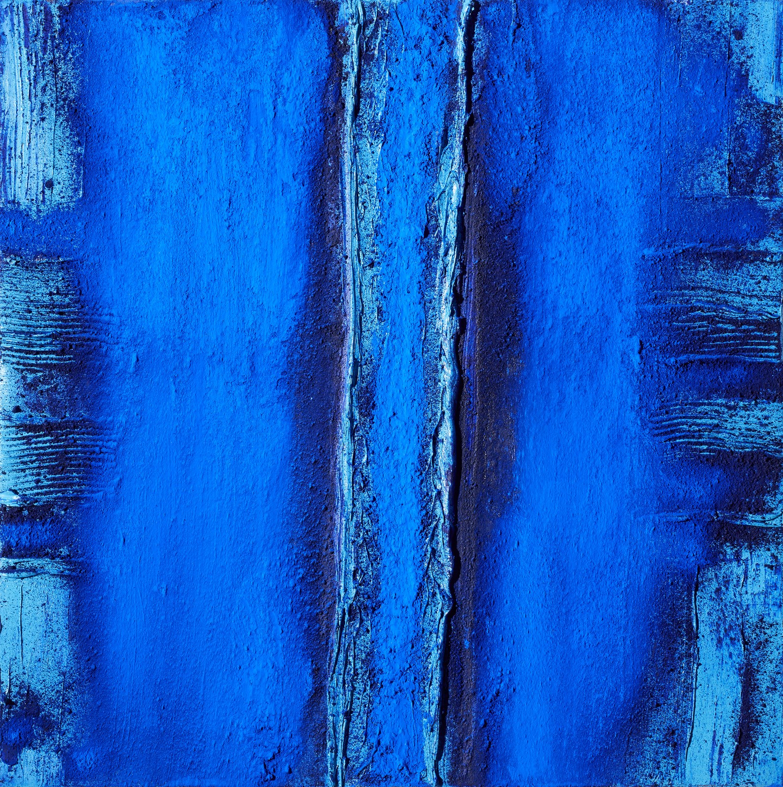 LO GIUDICE MARCELLO (n. 1955) Eden Blu. 2021. Tecnica mista su tela. Cm 99,00 x 99,00. Al retro titolo, firma e anno. Autentica dell'artista su fotografia. Entro teca di plexiglass. Lievi difetti. Cornice presente
