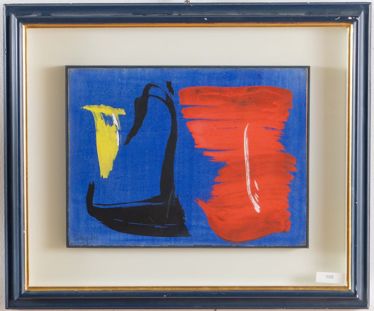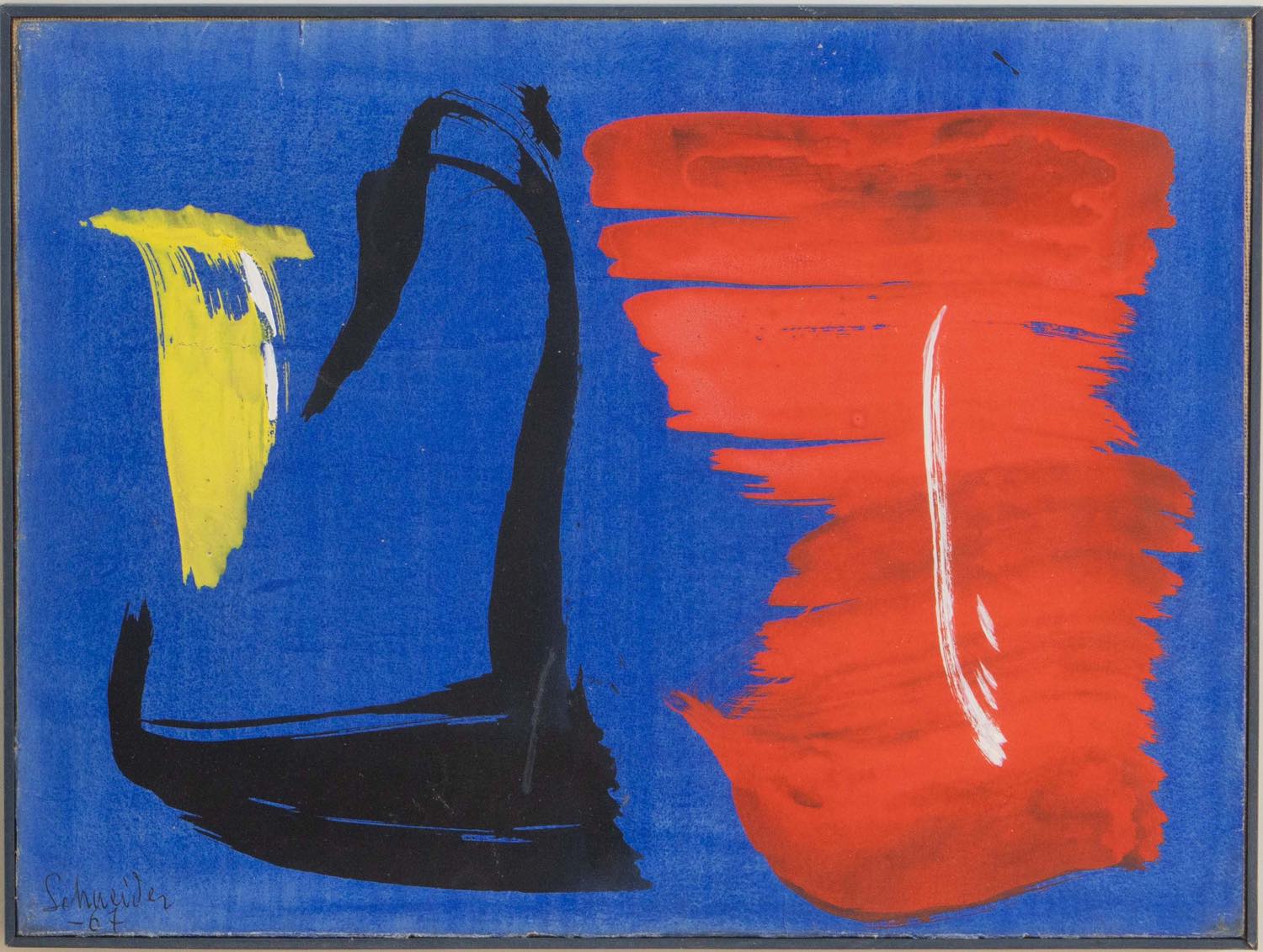 Acquerello su carta applicata su tela, firmato e datato in basso a sinistra “Schneider 67”, al retro reca timbri Lorenzelli Arte – Milano e altri timbri, H cm 31x42