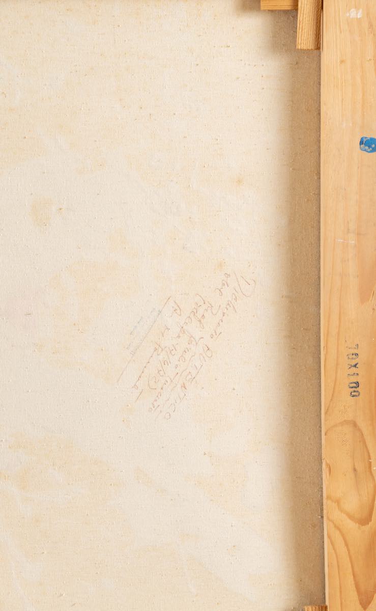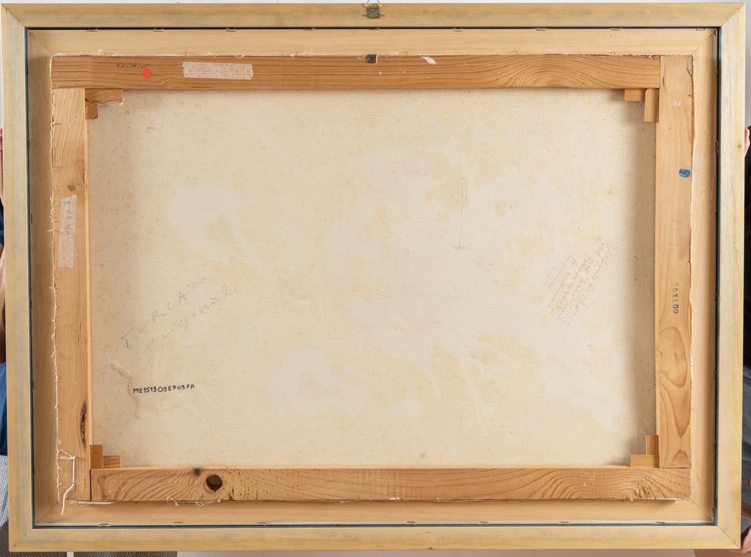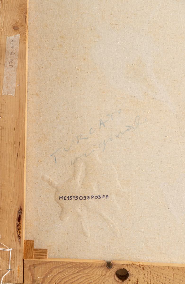 Olio, acrilico e tecnica mista su tela, al retro reca firma “Turcato/originale”, iscrizione per autentica “Dichiarato Autentico dal Prof. Giulio Turcato (delega 17-04-72) Avv. M. Pannuti” con timbro e firma, e numero di repertorio, H cm 70x100 - Opera accompagnata da certificato di autenticità su fotografia dell’Archivio Giulio Turcato a firma Ettore Caruso con numero di repertorio ME151309EP03FA.