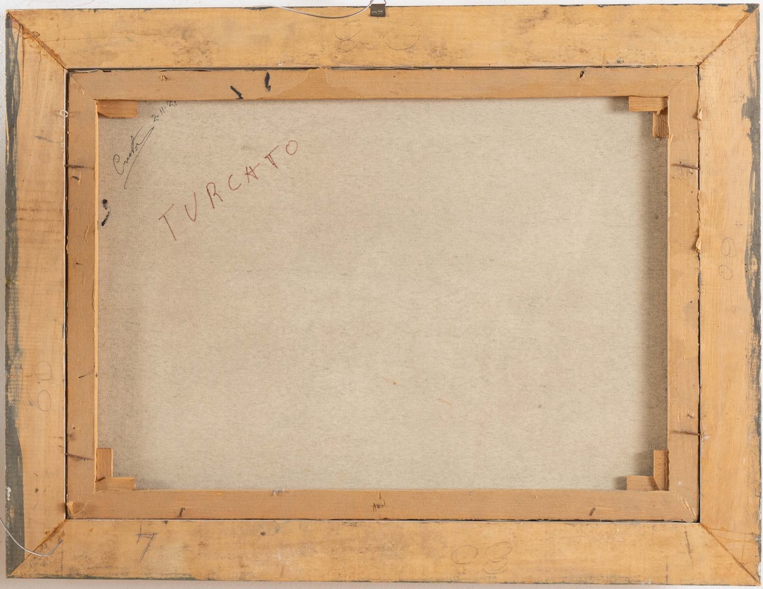 Tecnica mista e collage su tela, firmato in basso a destra “Turcato”, reca al retro firma “Turcato” e iscrizione datata 2-11-79, H cm 50x70