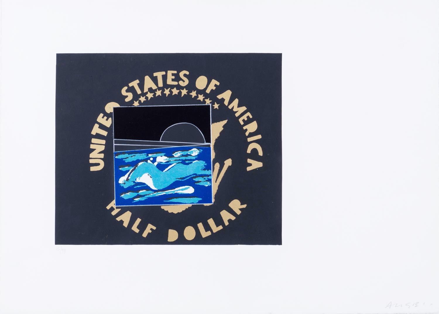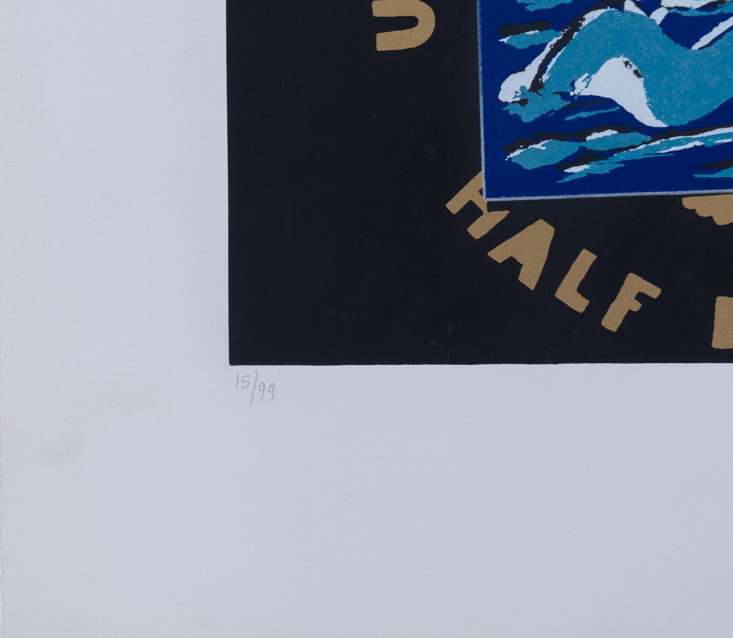 Serigrafia a colori su carta, firmata in basso a destra “Angeli”, numero di tiratura in basso a sinistra 15/99, Lastra H cm 31x36 – Foglio H cm 50.5x70